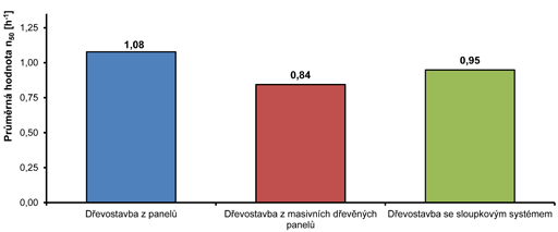 Nejnižších hodnot n50 bylo dosaženo u objektů s kombinací obvodové stěny i střechy (stropu) provedenými z monolitického betonu nebo ze zmonolitněných konstrukcí. Naopak nejhorších výsledků bylo dosaženo u objektů s ocelovou nosnou konstrukcí. Těchto objektů bylo měřeno poměrně malé množství a jednalo se spíše o atypické konstrukce. S výrazným náskokem byla druhá nejhorší kombinace s obvodovou stěnou zděnou a střechou dřevěnou. Takových objektů je naopak v souboru dat poměrně hodně, takřka pětina.