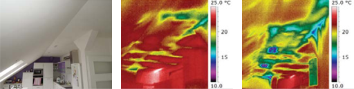 Rozdělení objektů podle vzduchotěsnicí vrstvy střechy s dřevěnou nosnou konstrukcí ukazuje, že nejlepších výsledků je dosaženo u budov se vzduchotěsnicí vrstvou střechy z desek na bázi dřeva, což jsou nejčastěji OSB desky. Typickou netěsností u střešních konstrukcí jsou nekvalitně provedené vzájemné spoje fólií, napojení na přilehlé konstrukce a napojení na prostupující konstrukce (příklad netěsného stropu podkroví je na obr. 16.