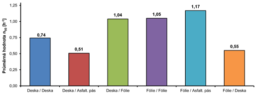 Nejlepších hodnot je průměrně dosahováno u objektů, kde byla kombinace vzduchotěsnicí vrstvy (obr. 18):