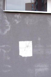 Při průzkumu jsme odebrali vzorky z jednotlivých objektů ve vybledlých místech (obr. 03, 04). Ve spolupráci s VŠCHT Praha bylo zjištěno, že omítka se skládá ze směsi anorganického plniva uhličitanu vápenatého, které je pojené organickou látkou na bázi polyakrylátu. Ukázalo se však, že směs obsahuje příměs oxidu vápenatého, který reaguje s vlhkostí za vzniku hydroxidu vápenatého, který je ve vlhku mobilnější a díky své rozpustnosti difunduje k povrchu omítky, kde posléze absorbuje díky své alkalické reakci oxid uhličitý ze vzduchu za vzniku povrchové krusty uhličitanu vápenatého. Tak dochází ke vzniku světlých skvrn na povrchu omítky. V tmavých místech omítky byla identifikována vyšší koncentrace polymerního pojiva (akrylátu).