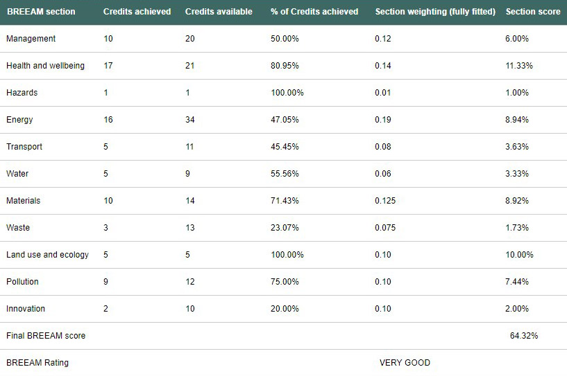 Významně se rozšířil počet bodů, které je možné v rámci certifikace získat, čímž je umožněna větší flexibilita v jejich výběru. Nadále zůstává zavedená metodika výpočtu výsledného skóre, přičemž počet dosažených bodů v jednotlivých oblastech je násoben tzv. váhou dané oblasti. Existuje 7 odlišných setů vah jednotlivých oblastí, a to pro 7 různých skupin objektů (tab. 7).