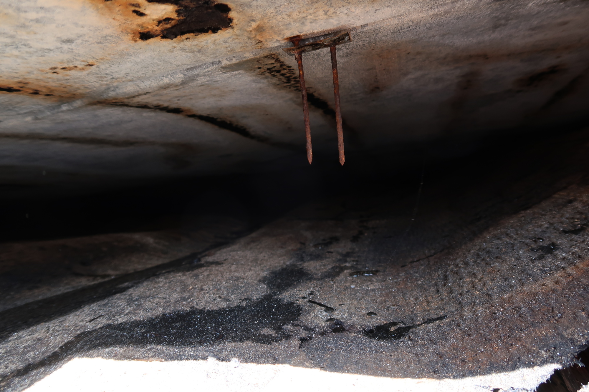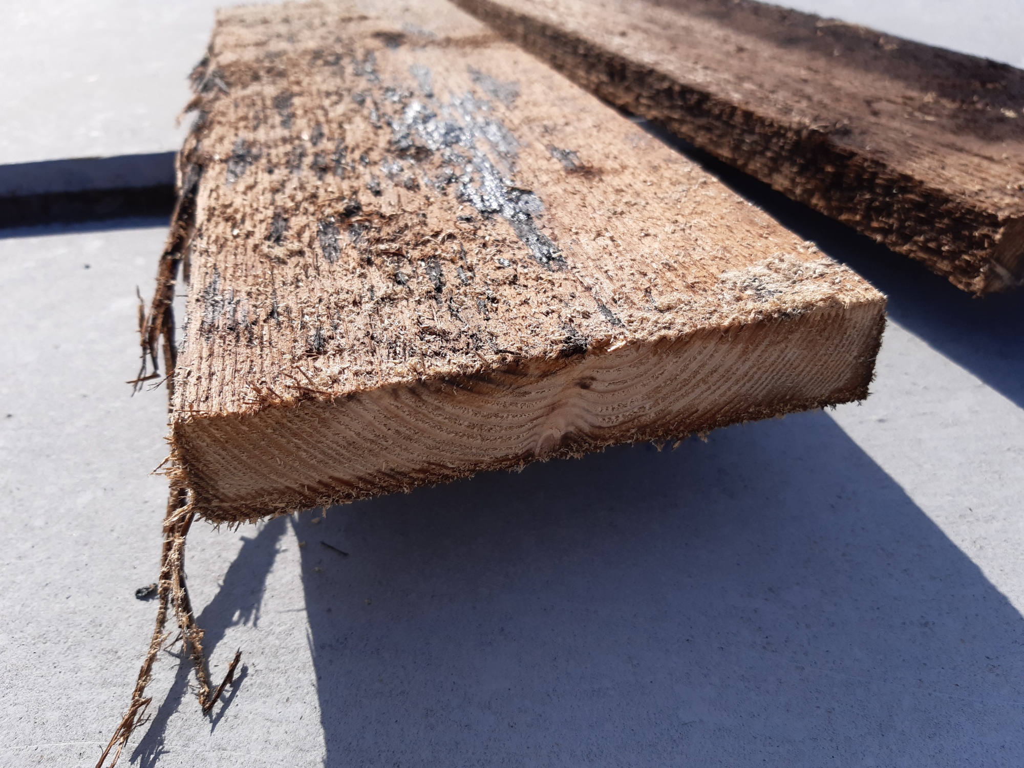 Sonda č. 2 – Zde již bylo bednění z prken shnilé. Biologické napadení bylo oproti první sondě značně rozvinuté. V sondě byla patrná také ztráta soudržnosti krytiny s bedněním – vytržené příponky ze shnilého podkladu.
