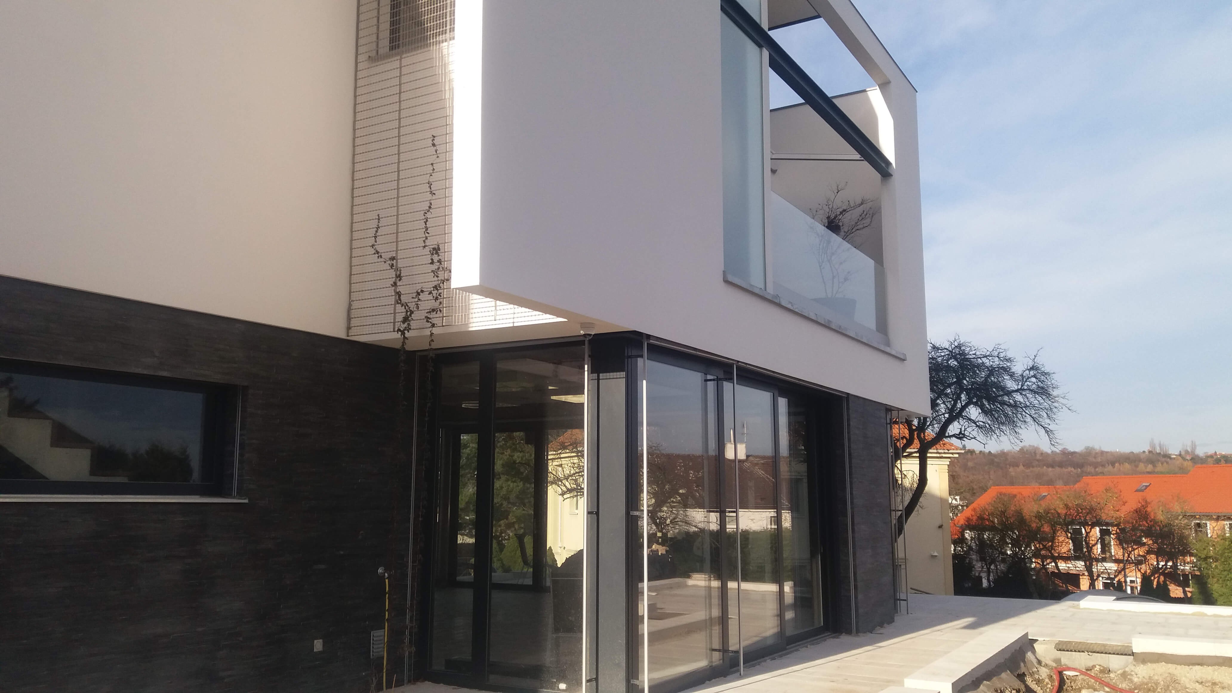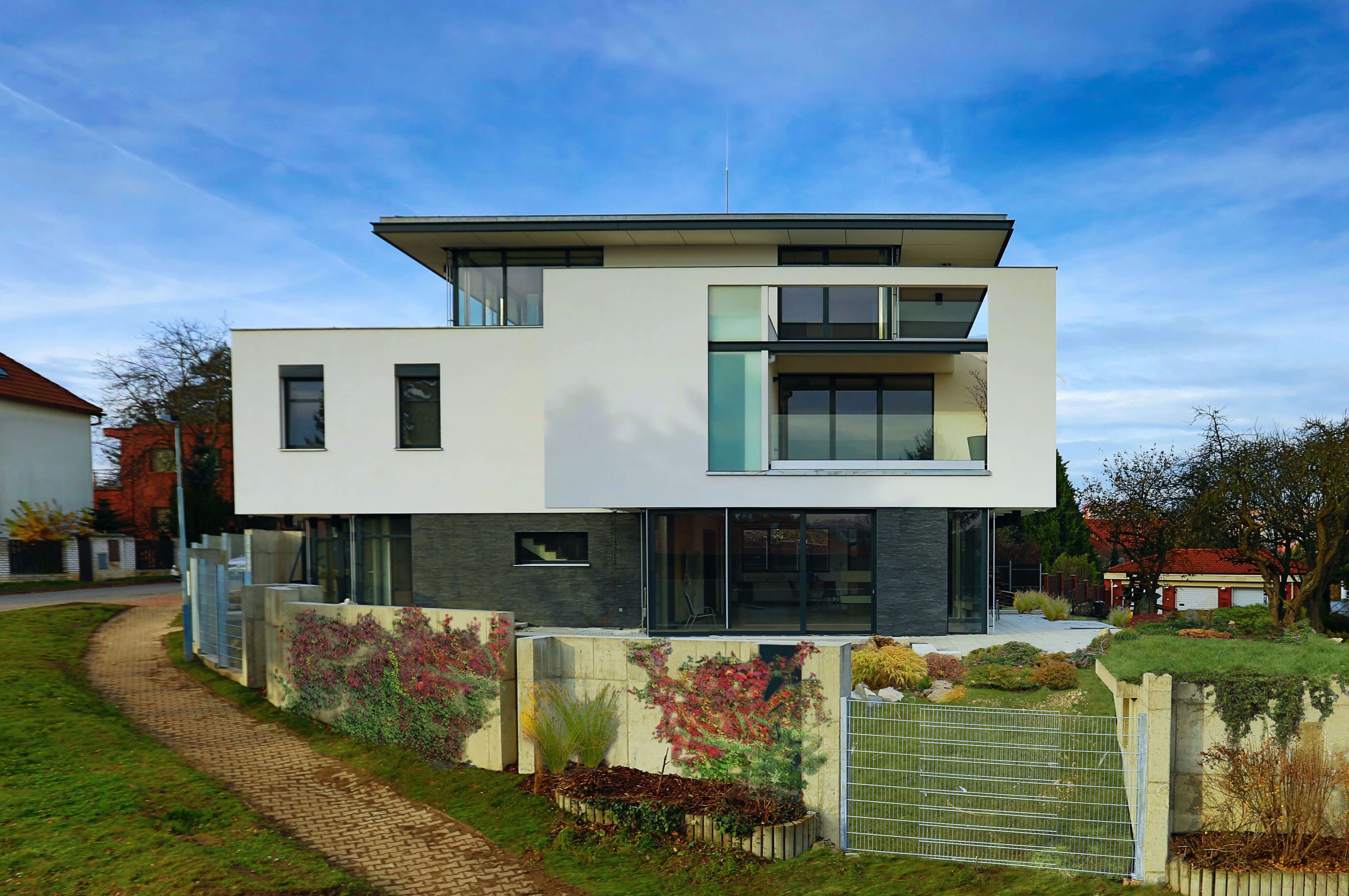 Rodinný dům je koncipován jako vila s jedním podzemním podlažím, 2 nadzemními podlažími a ustupujícím podkrovím. Zastavěná plocha domem činí 242,9 m2. Architektonicky využívá svažitého pozemku a otevírá se ve směru výhledu. Je založena na jednoduchém výrazu tvořeném plochou bílé fasády s velkými okenními plochami postavené na přízemní podnoži s černým kamenným obkladem a ukončující střechou s velkým přesahem a lemující ocelovou válcovanou tyčí po obvodě.