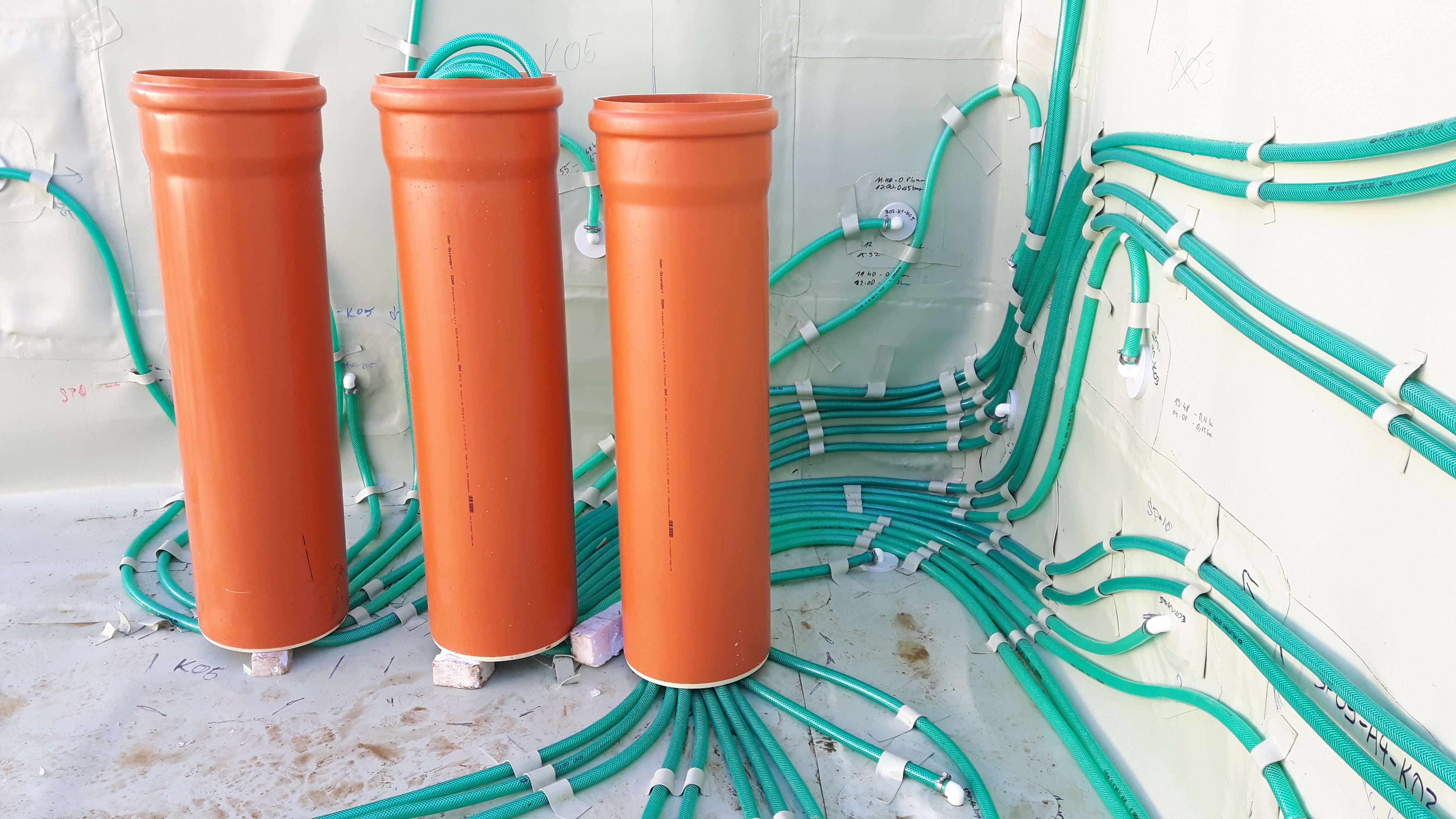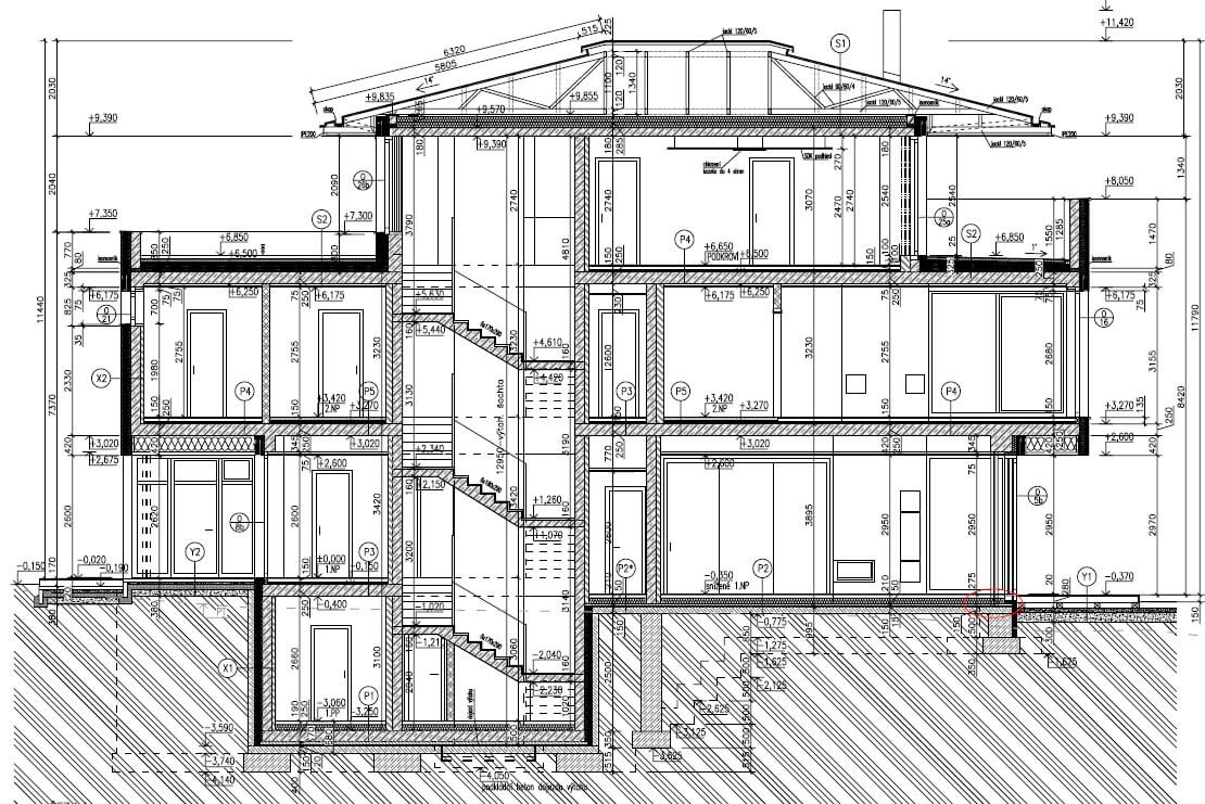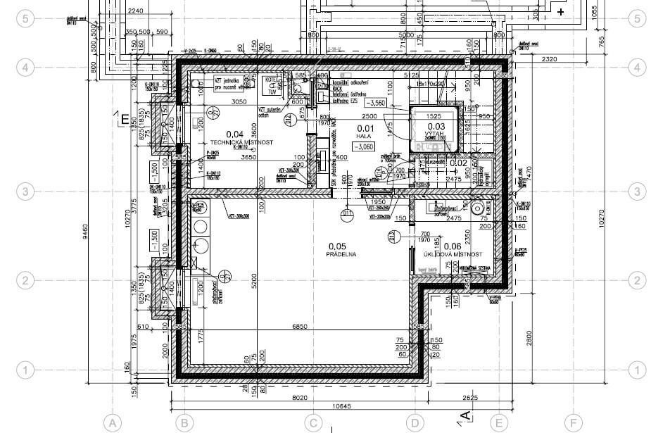 Rodinný dům je v současnosti dokončen a zkolaudován. Investor připravuje stěhování a my máme v tomto čase možnost ověření si bezvadného stavu suterénního zdiva (železobeton) a prostupů. Šachty, ať již ve stěnách či v podlaze, jsou zapracovány do interiéru - vodorovné jsou opatřené shodnou dlažbou jako ve zbytku interiéru, avšak odnímatelnou, menší systémovým plastovým poklopem, vodorovné jsou kryty nerezovým plechem. Protože bude i suterén s výměrou bezmála 80 m2 aktivně využíván, považujeme za skvělý výsledek, že jeho interiér nehandicapuje žádný defekt a tak, jako celý dům, se pomalu připravuje na aktivní využívání.