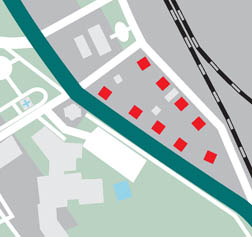 Rozdílnost hodnot hygienických limitů lze nejlépe demonstrovat na konkrétní situaci. Jako příklad jsme zvolili vilovou čtvrť na okraji města, která se nachází mezi silniční a železniční komunikací. V blízkosti se nachází parkoviště soukromého provozovatele. Celá situace je zachycena na obr. 01.