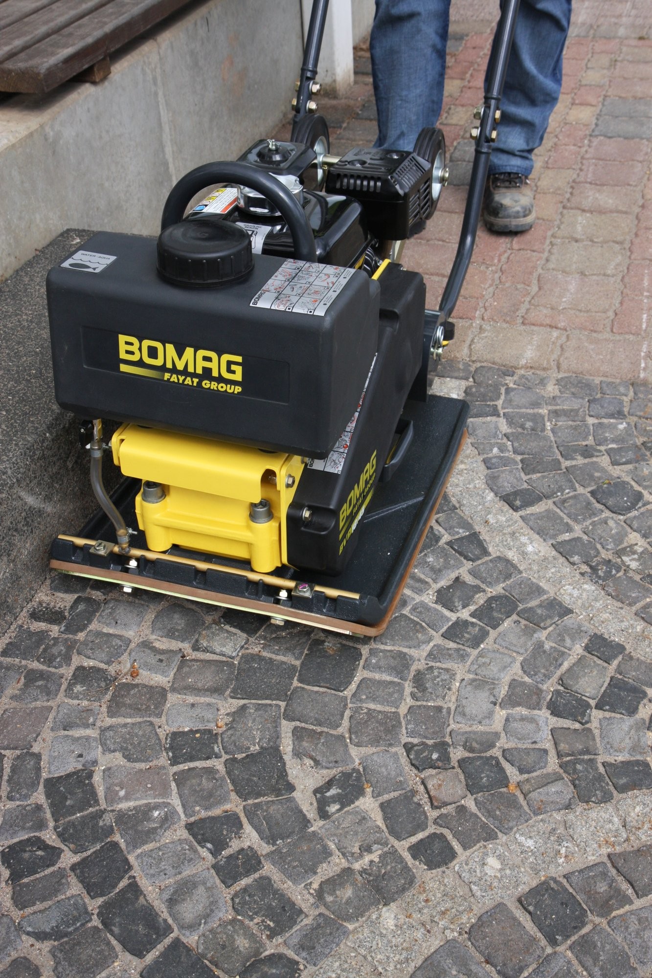 16 - dvěstěkilogramová deska při hutnění betonové dlažby většího formátu