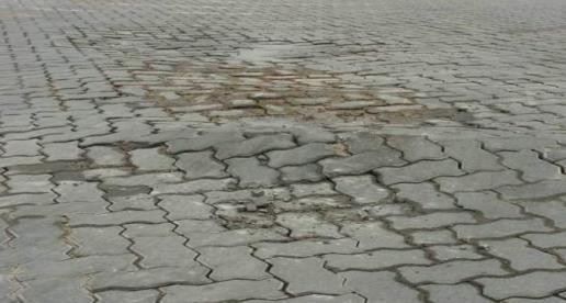 3 a 4 - Doslova vlnobití zámkové dlažby vzniklo na příjezdové cestě ke skladu. Cesta byla pojížděna nákladními automobily. Po provedení sond do skladby cesty, bylo zjištěno, že dlažba byla položena do lože z drceného kamene frakce 4 až 8 mm, ale pod ním byla již navážka, kterou byl terén v minulosti vyrovnáván.