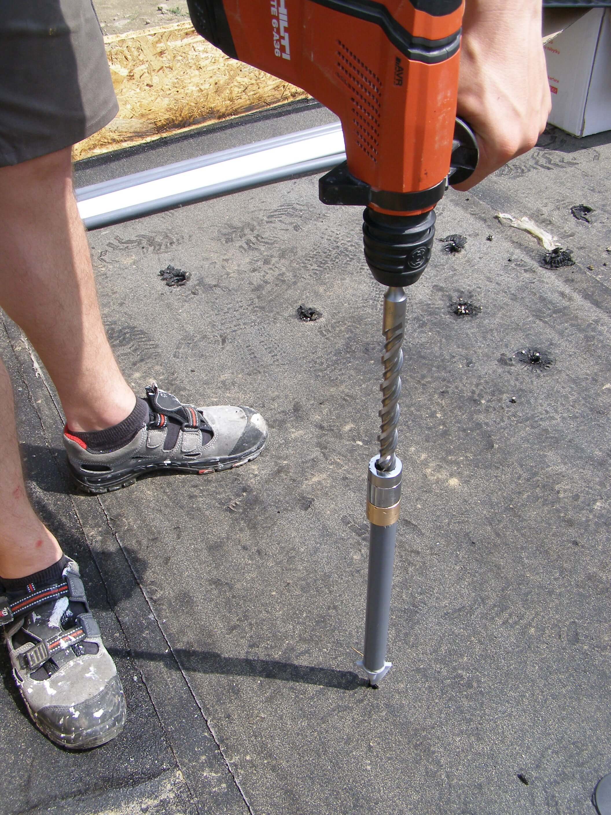 Možnost použití vrtací soupravy na konkrétní střeše je třeba ověřit zkouškou na stavbě, kterou provede a vyhodnotí technik Atelieru DEK.