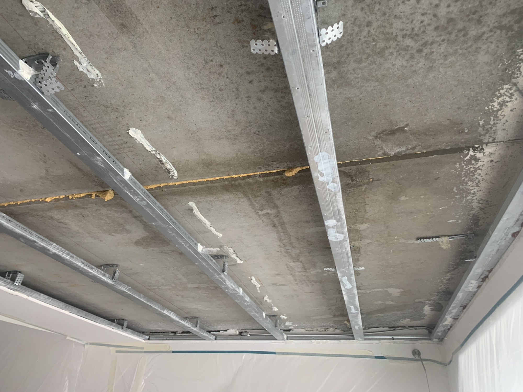 Majitel se tuto situaci již dříve pokusil vyřešit lokálním snížením podhledu pomocí sádrokartonové konstrukce vyplněné minerální vatou, pod kterou se nacházela parozábrana z polyetylenové fólie. Takové řešení se ukázalo jako neúčinné, jelikož se na sádrokartonových deskách v chladných měsících nadále projevovaly výrazné vlhkostní mapy. Z rozboru poruch popsaných v minulém článku jasně plyne vysvětlení, proč takový zásah nemohl fungovat.