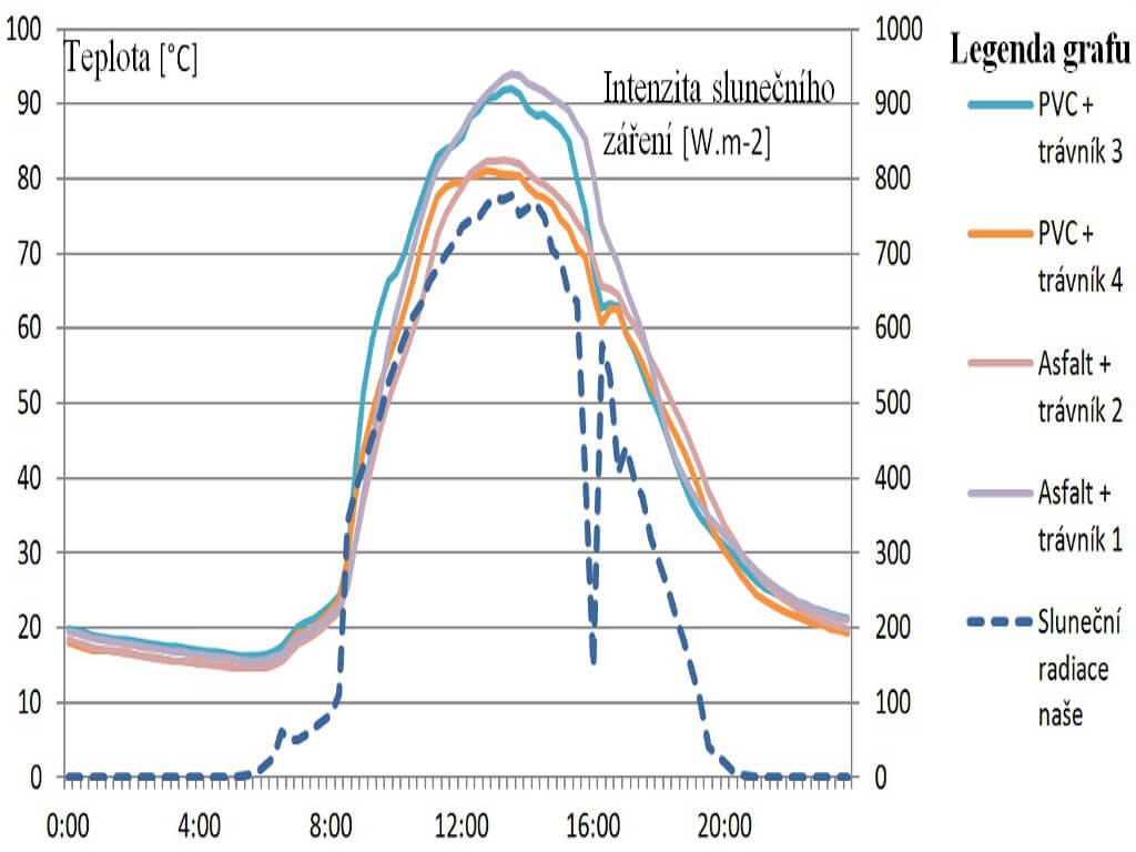 Po položení umělého trávníku pokračovalo měření teplot a sluneční radiace až do 14. září, kdy byl model demontován.