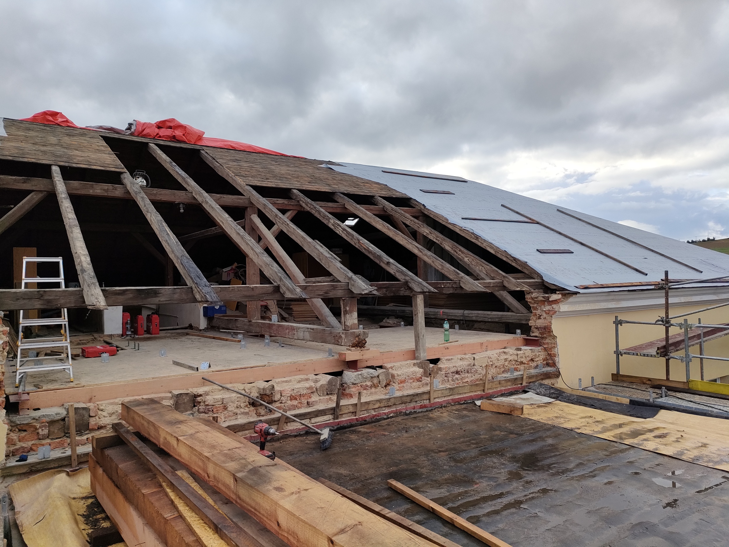Zhotovitel nosné konstrukce a střechy: Pokrývačství Duda - Václav Duda