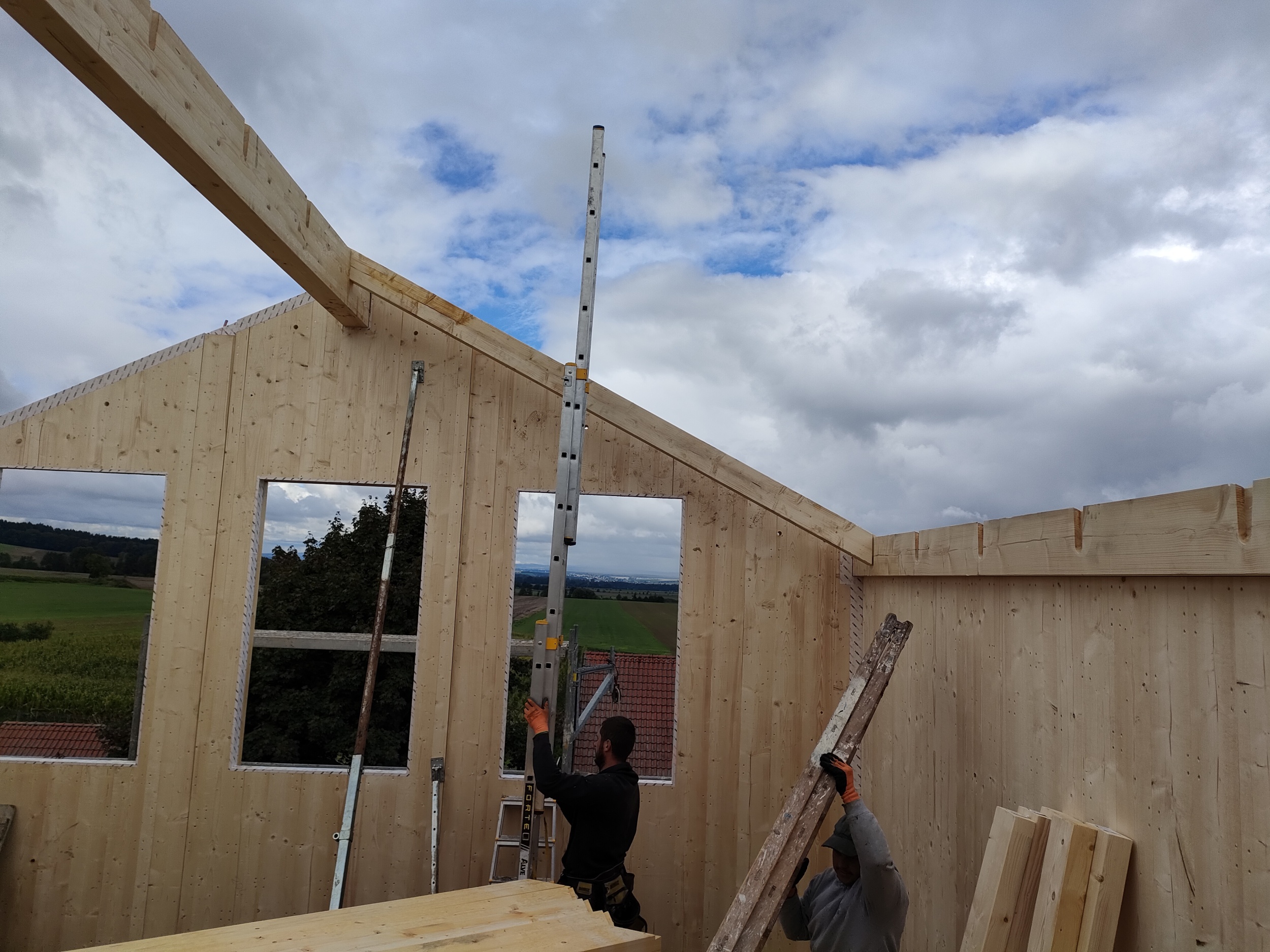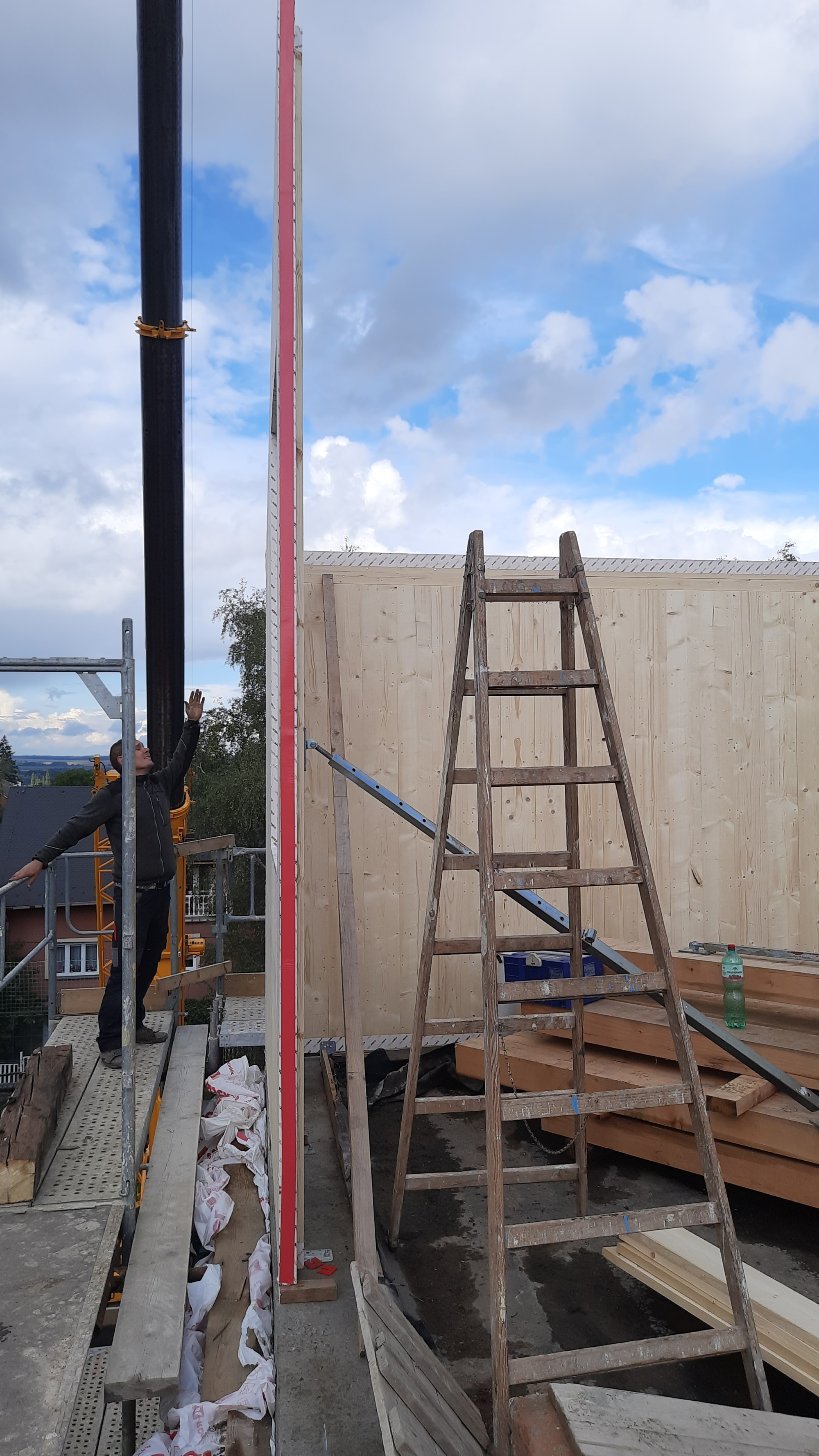Přesnost vytyčení polohy panelů je důležitá, protože v panelech jsou výřezy pro osazení pozednic a vrcholové vaznice. Pokud by panely nebyly ve stejné výšce, nešlo by usadit vaznice a pozednice do vyřezaných otvorů v panelech a sesadit jednotlivé části krovu. Spoje pro usazení krokví jsou připraveny na CNC obráběcím stroji a pokud by panely nebyly dobře usazené, tak spoje do sebe nezapadnou.