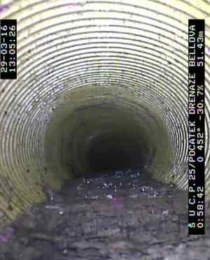 K proplachování drenážních trubek v drénu lze využít technologii pro čištění kanalizace. Čištění je prováděno pomocí vodního paprsku tryskajícího pod vysokým tlakem ze speciálních proplachovacích hlavic. Potřebu zajištění kontroly a údržby drenáže potvrzují provedené kontroly drenáží, viz Obr. 27.