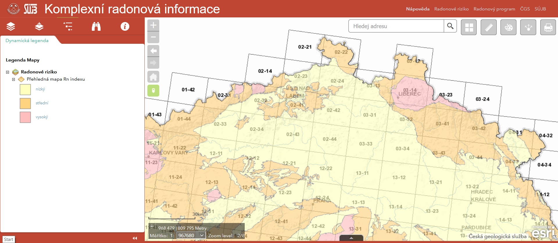 Informace o výskytu radonu v České republice jsou dostupné na stránkách České geologické služby. Na obr. 1 je náhled na mapovou aplikaci umístěnou na stránkách ČGS.