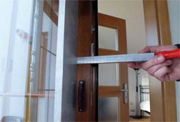 Při místním šetření, které bylo svoláno po obdržení soudního spisu, jsme zjistili značné průhyby svislých profilů rámů křídel, díky kterým nedoléhalo těsnění křídla na rám okna. Odchylka od rovinnosti profilů v případě balkónových dveří dosahovala místy až 6 mm (obr. 1 a 2).