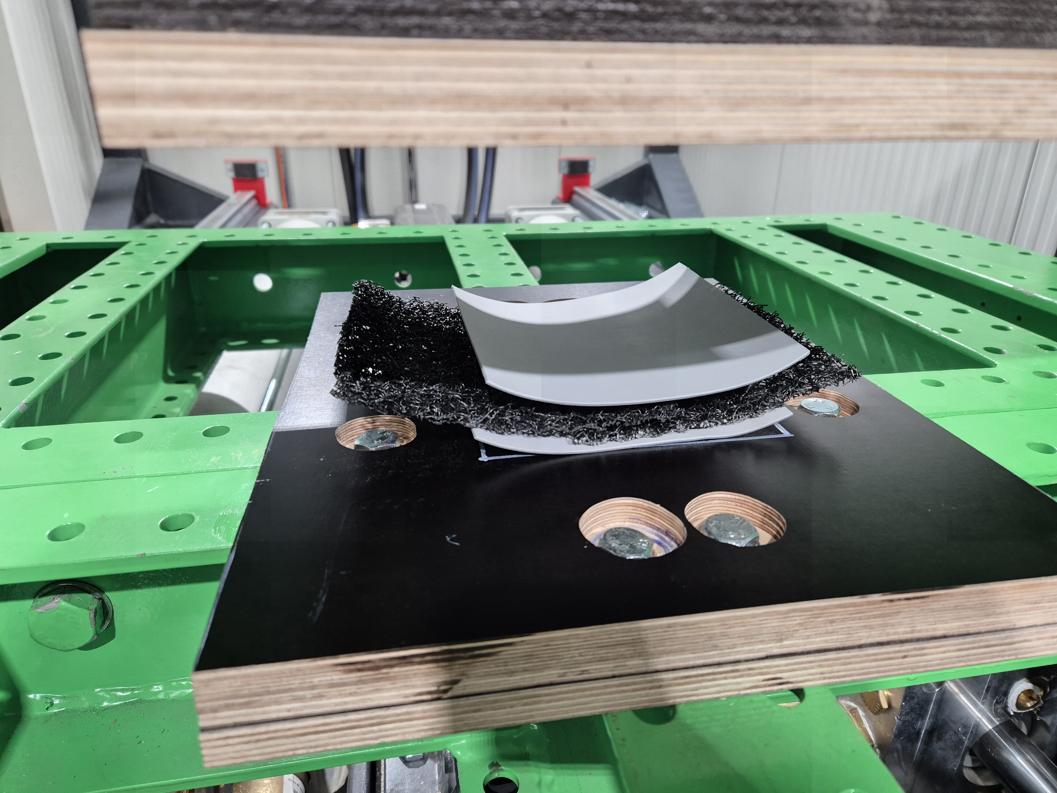 Pro některé specifické výrobky a systémy není k dispozici odpovídající zkušební metodika. Například u hydroizolačního souvrství Dualdek pro spodní stavbu a střechy jsme chtěli otestovat mechanickou odolnost a vzájemné působení jednotlivých vrstev (PVC-P fólie + drenážní vložka ze smyčkové rohože) v podmínkách stavby. Souvrství jsme vystavili jak působení prostého tlaku, tak otěru za současného působení tlaku (viz. obr. 6, 7, 8). Získané poznatky nám usnadní správnou volbu materiálů pro tento hydroizolační systém a zároveň cenný soubor informací pro jeho navrhování.