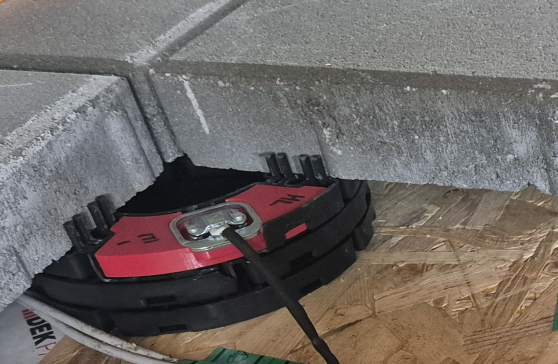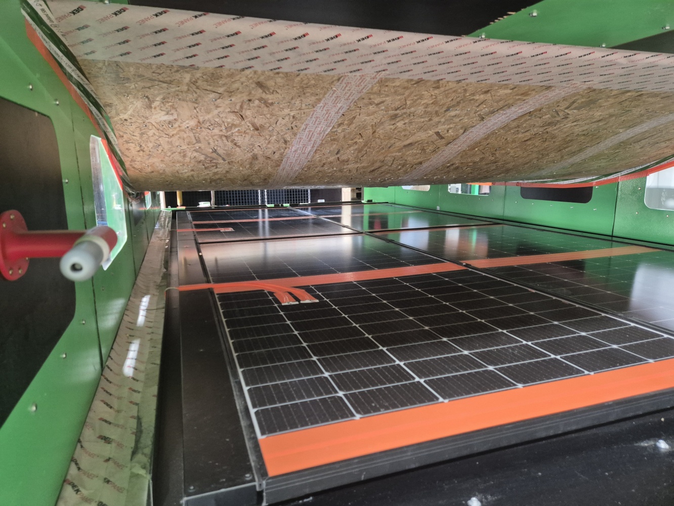 Další skupinu probíhajících zkoušek tvoří testy konstrukčních systémů a výrobků vyvíjených společností DEK a systémů nabízených mj. prostřednictvím katalogu DEK Stavebniny [4]. Příkladem je test odolnosti systému DEKSOLAR INTEGRA určeného k montáži FV panelů na střechy se skládanou krytinou (obr.12, 13).