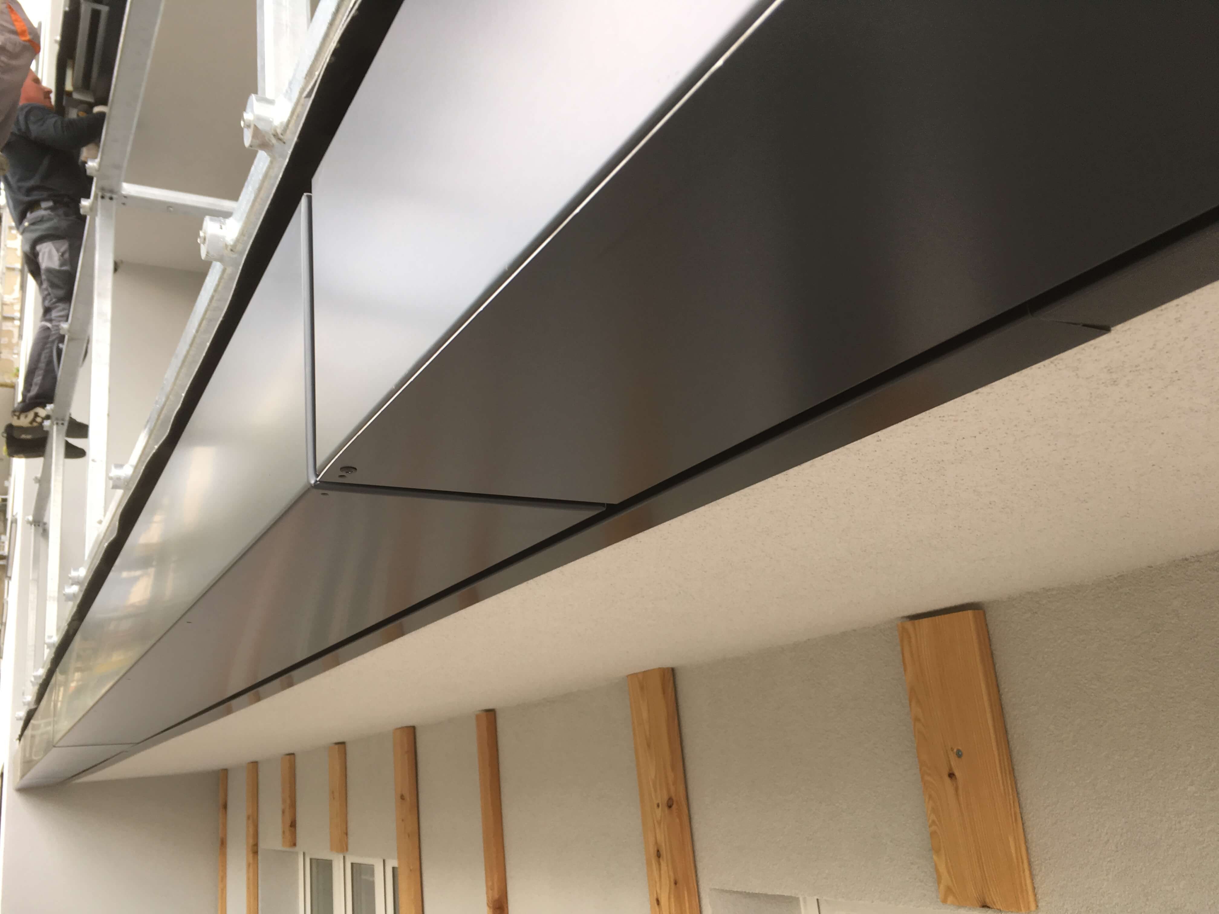 Obklad z plechových kazet: výroba - Dekmetal s.r.o. – Ing. Martin Bugner, montáž – Ing. Josef Müller