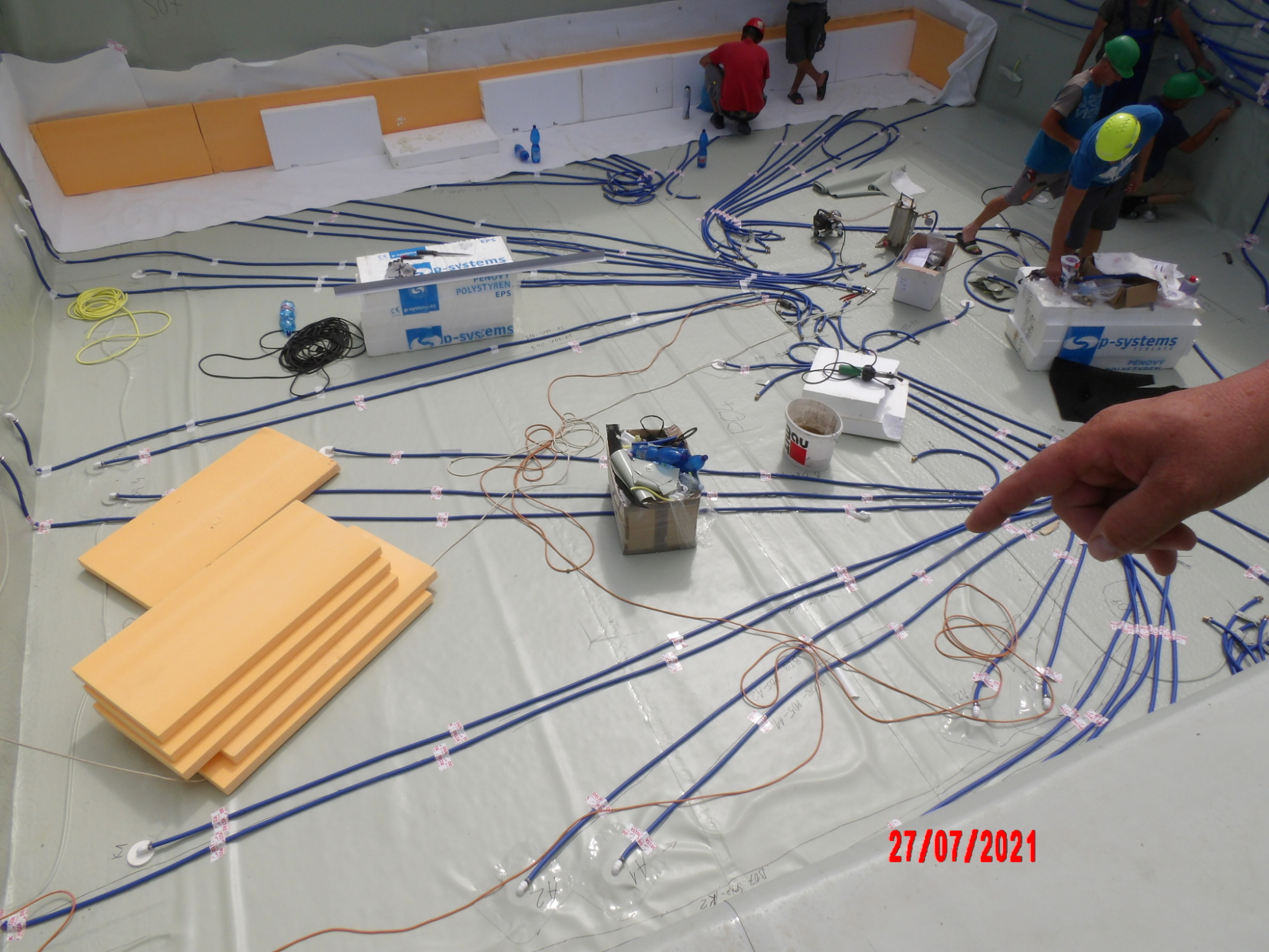 Jako velmi důležitá se ukázala jak kvalitní příprava betonového podkladu, tak i pečlivé přípravy a popis popisu sektorů, vynesení poloh přechodových trubic a všech hadic.