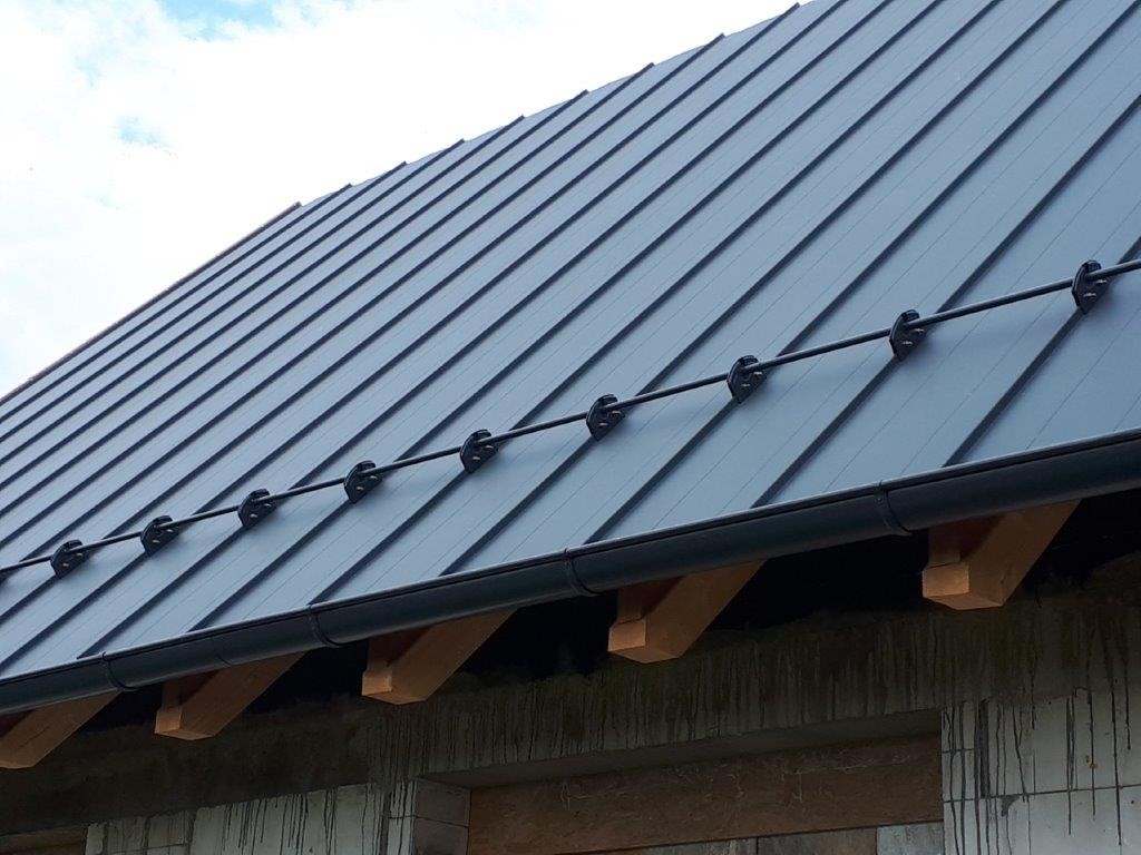 Následně bylo provedeno celoplošné bednění z prken (Foto 9). Krytina byla vybrána hladká plechová a byla položena na smyčkovou rohož, která tvoří separační vrstvu (Foto 10 a 11). Krytina byla provedena v souladu s podklady výrobce, včetně větrání hřebene a sněhových zachytávačů (Foto 12 a 13). K záklopu z OSB desek se připevnily sádrokartonové desky vložené mezi krokve „po vlašsku“ (Foto 14). Výsledný podhled se dle informací od investora velmi povedl a splnil jeho očekávání.