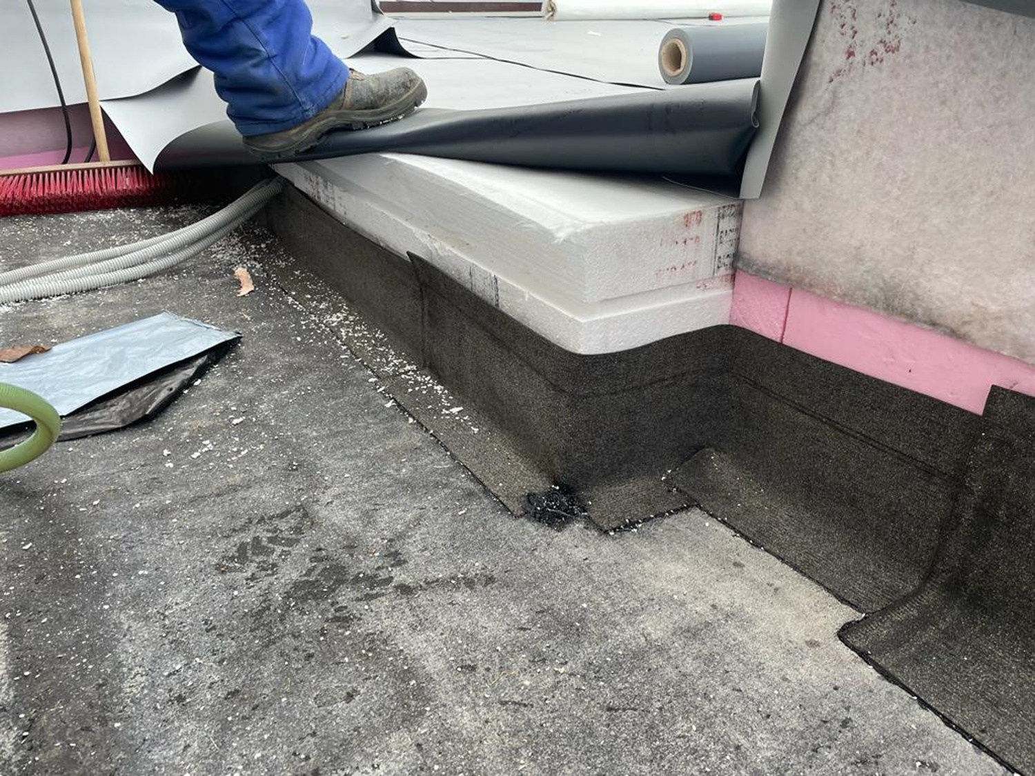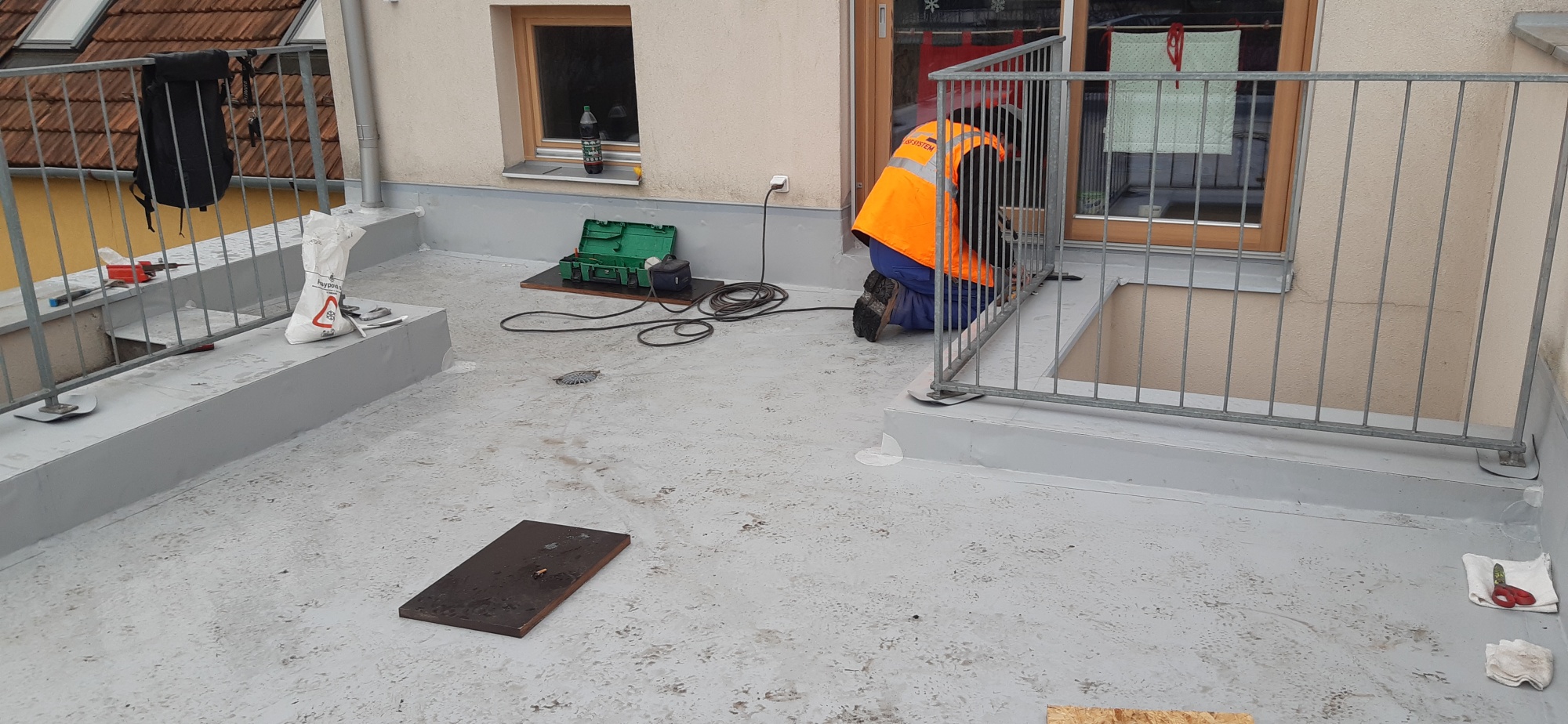 V pozici konzultačního technika jsem byl nápomocen investorovi a později i doporučené realizační firmě při hledání vhodného řešení rekonstrukce terasy. Využil jsem znalost programu výzkumu a vývoje našeho centra DERIC (DEK Experimental Research Innovation Center), abych pro vodotěsné připevnění zábradlí doporučil využít prototyp jednoho z doplňků pro střechy v centru DERIC vyvinutého.