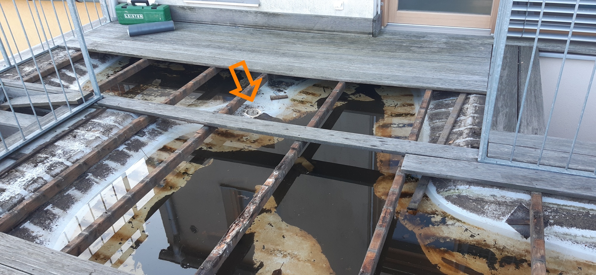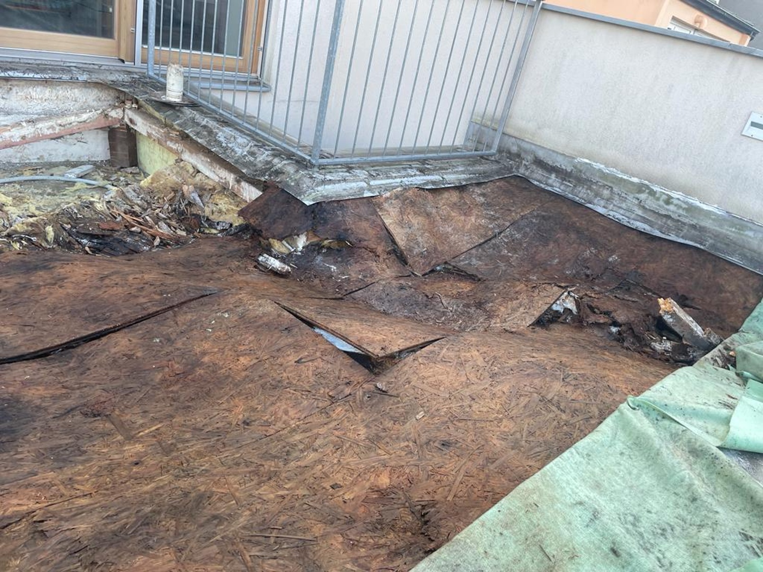 Stav terasy jen potvrzuje, že použití dřevěných hranolů a desek v nevětrané střeše s povlakem je velmi rizikové.