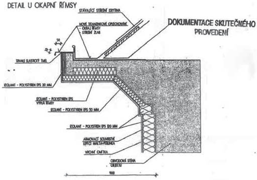 Současné trendy zajišťování potřebného tepelného odporu obvodových konstrukcí velmi často využívají vnější kontaktní zateplovací systémy. Pak je třeba zateplit i římsu. U starších i nových objektů může vzniknout komplikovaný konstrukční detail, především v souvislosti upevněním s klempířské konstrukce oplechování římsy. U dodatečně zateplovaných starších objektů vždy dojde ke změně vzhledu římsy, výrazně se zvýší její přední strana. Je-li na střeše skládaná krytina, v drtivé většině případů bude kombinována s doplňkovou hydroizolační vrstvou. Odvodnění této vrstvy bude vytvářet další komplikace v řešení konstrukčního detailu okraje střechy s římsovým žlabem.