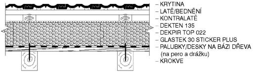 Při realizaci střechy rodinného domu se skladbou TOPDEK (tepelná izolace je nad krokvemi) využívající desky DEKPIR TOP 022 jsme se podíleli na návrhu konstrukčního detailu okraje střechy.