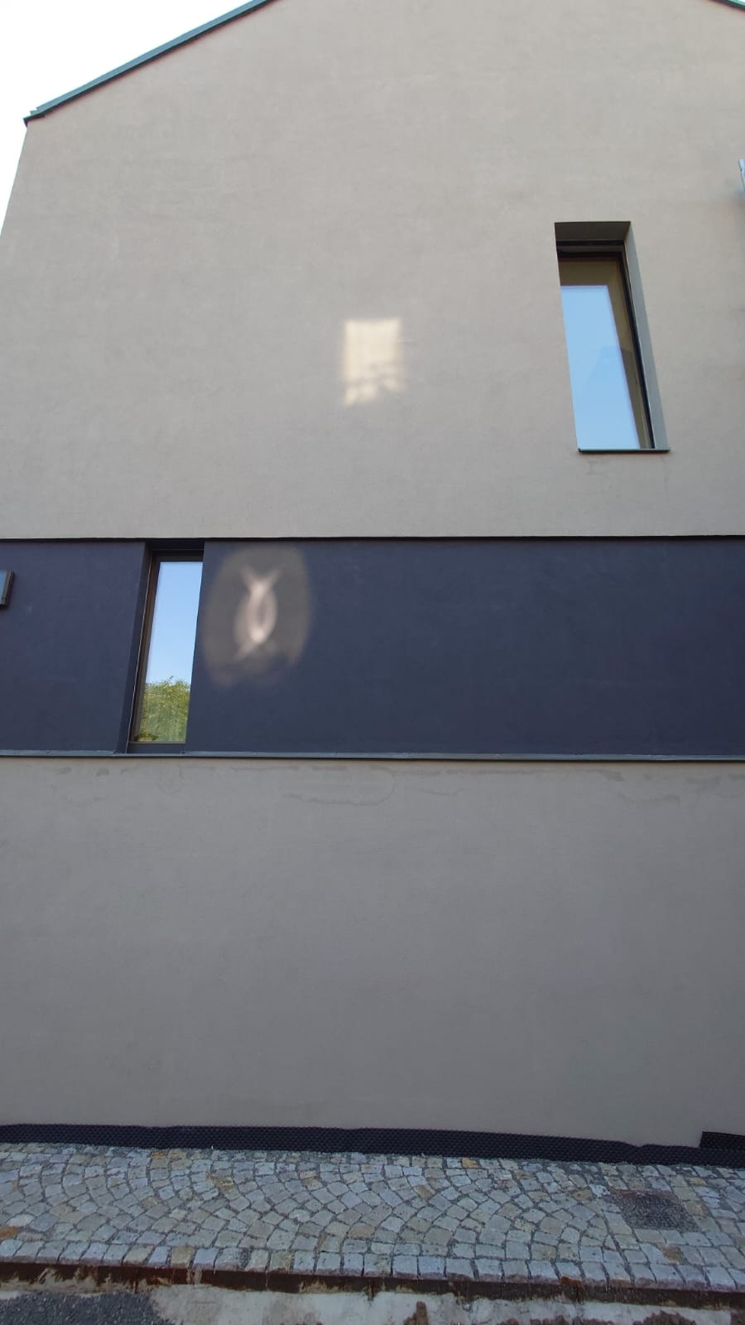 V domě probíhaly ještě stavební práce a ještě se v něm nebydlelo. Bylo letní období, ale v noci se vnější povrchy ochlazovaly. Vlhké stopy se vždy objevily po ránu bezprostředně pod parapetem, který překrýval odskok v tloušťce zateplení, a během dne poměrně rychle zmizely. Tento problém se každé ráno ve větší míře opakoval a po nějaké době se vlhké stopy začaly objevovat i na dalších místech pod parapety oken i na severozápadní straně domu.