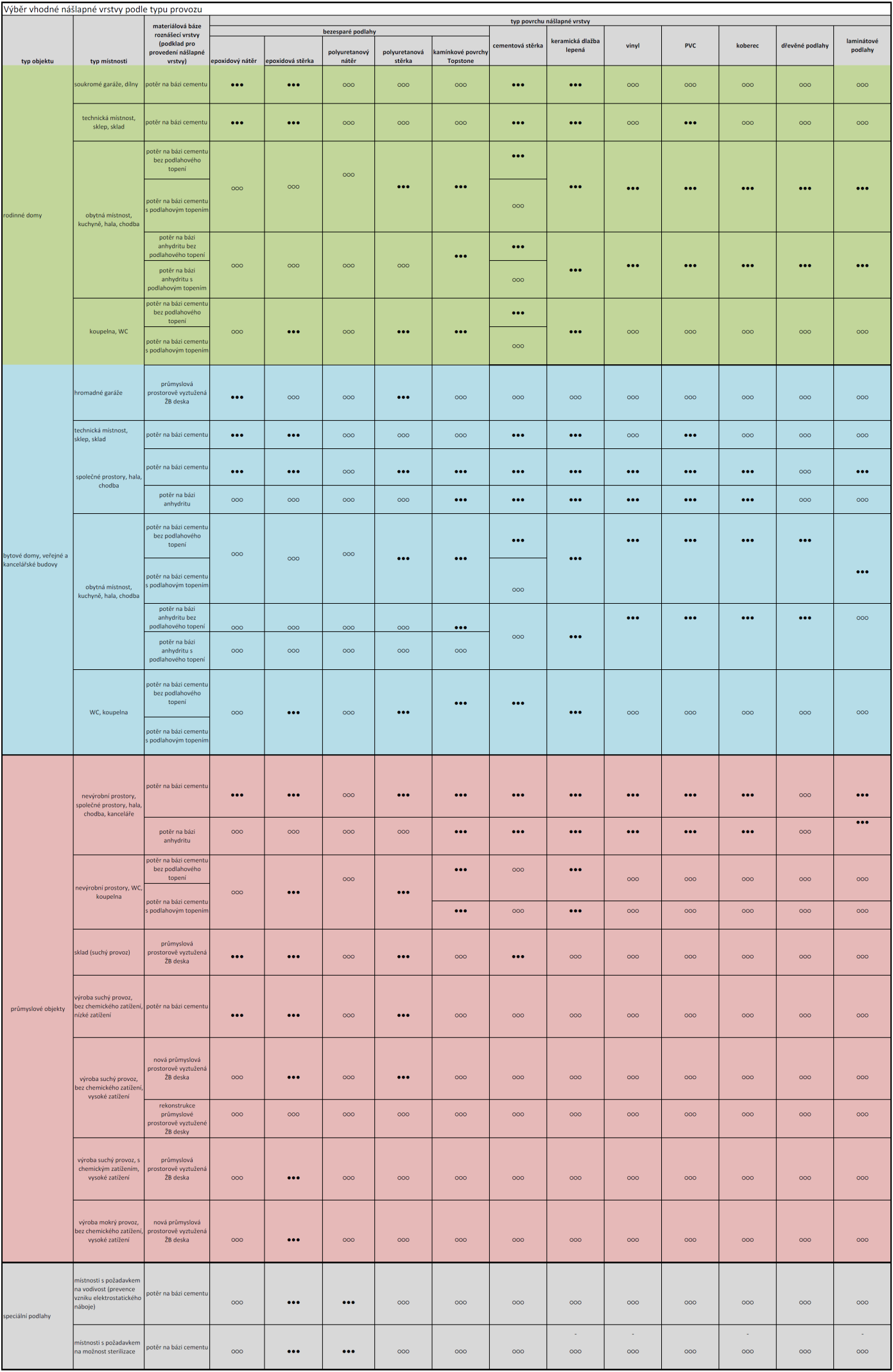 Tab. 7 - Doporučené použití nášlapných vrstev dle typu provozu a zásady jejich návrhu