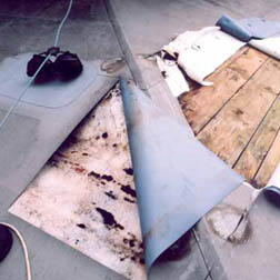 Do podstřeší nikdy nezatékalo, netvořily se trhliny v konstrukcích apod. (obr. 02). Na jaře roku 2009 uživatel při pochůzce po střešní ploše zjistil neúměrné průhyby krytiny, resp. jejího podkladu. Následným rozkryvem střech, uskutečněným v dubnu 2010, se zjistilo: