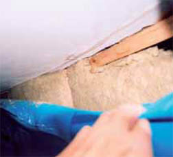 e) Naproti tomu vláknitá tepelná izolace se jevila suchá, bez stop destrukce (obr. 09).