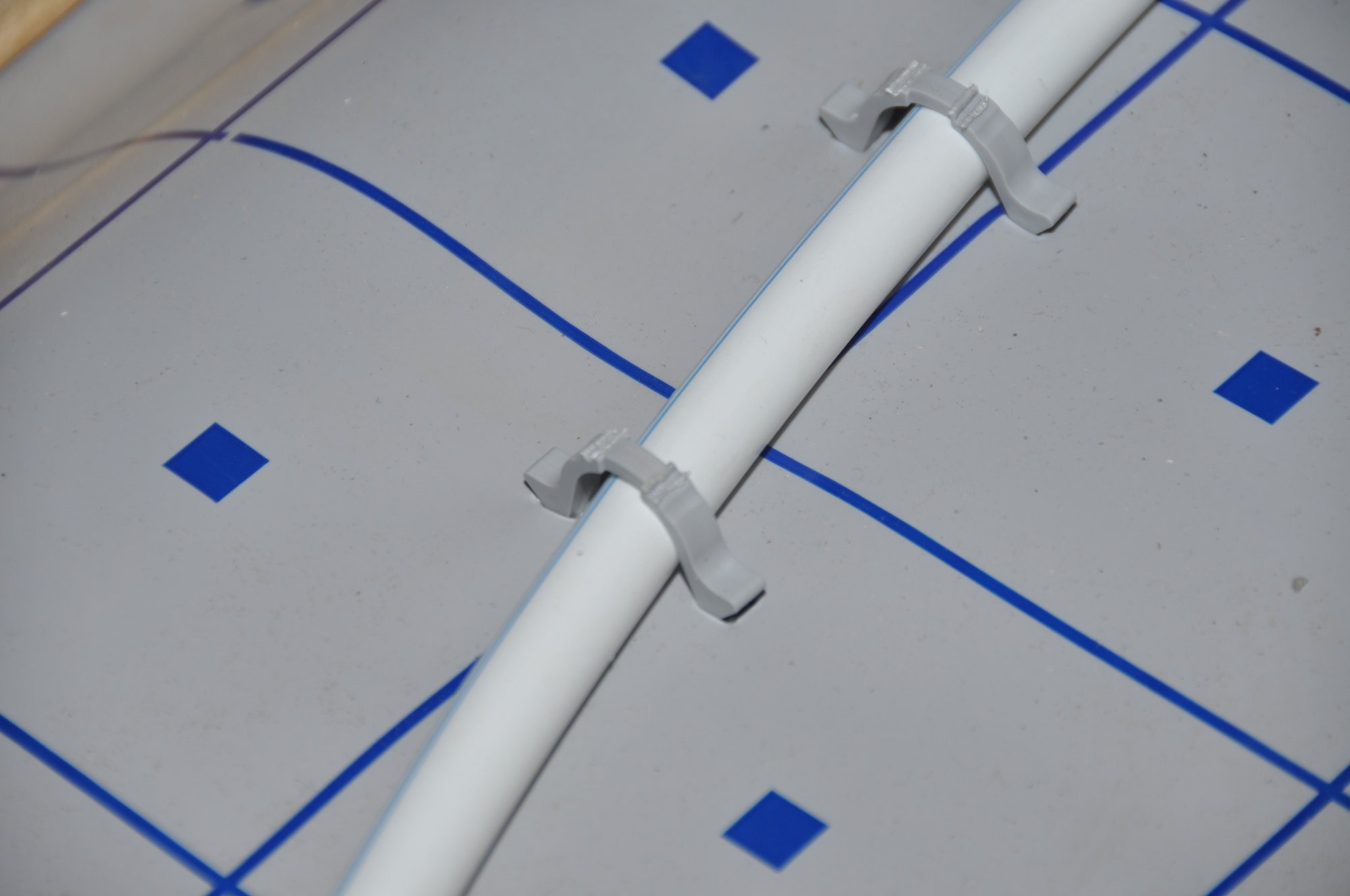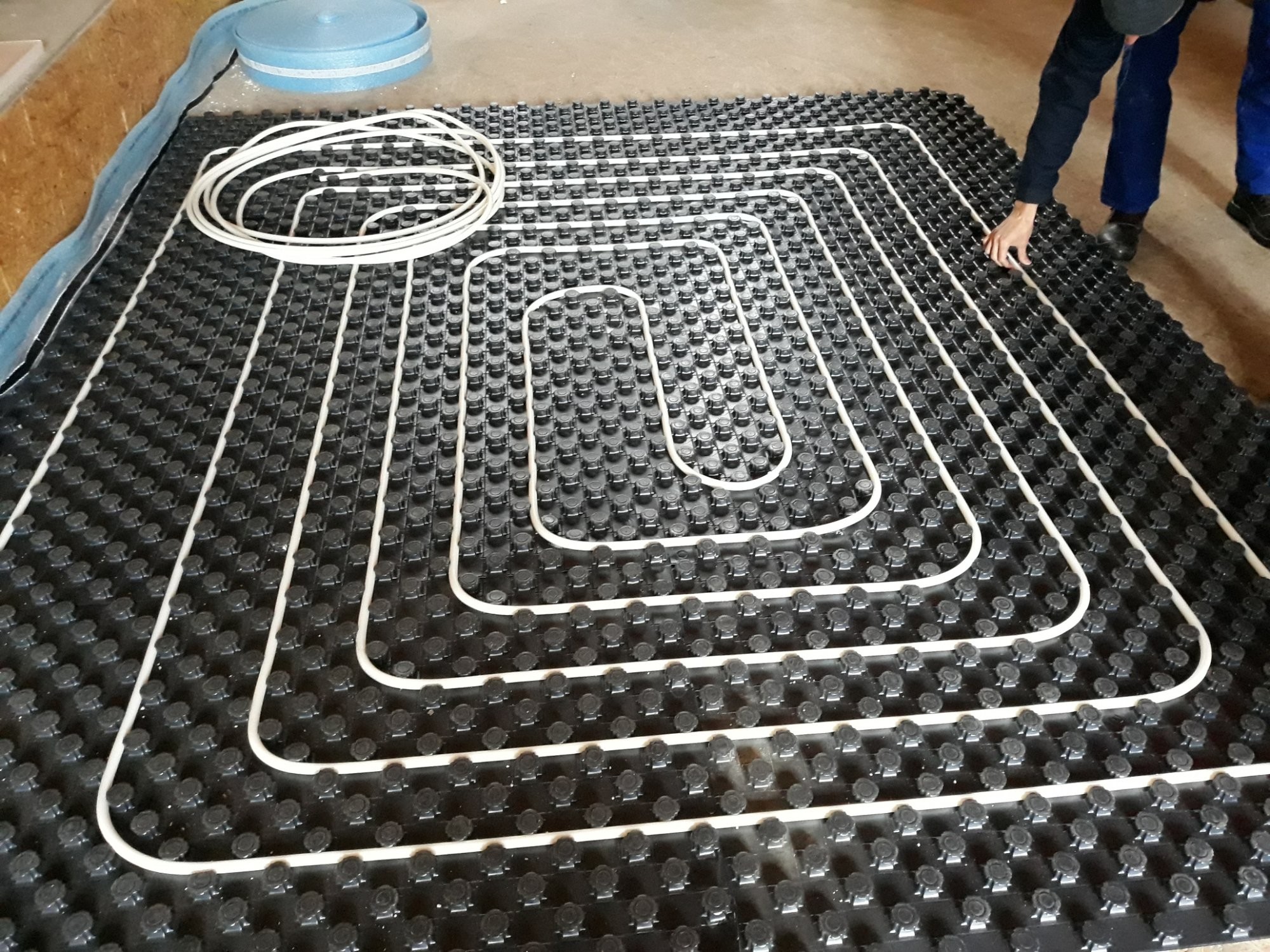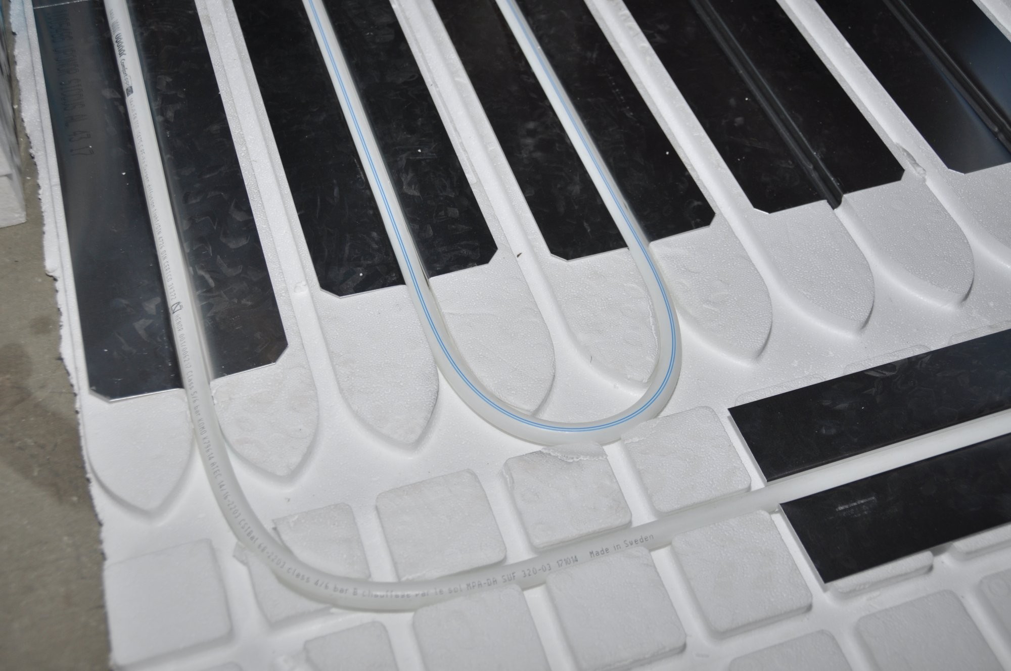 Potrubí se klade na desku z expandovaného polystyrenu. Spodní vrstva desky může být tvořena pružnějším polystyrenem (kročejovou izolací) a vrchní vrstva tužším polystyrenem. Deska je opatřena nopy, ve kterých je potrubí ukotveno.