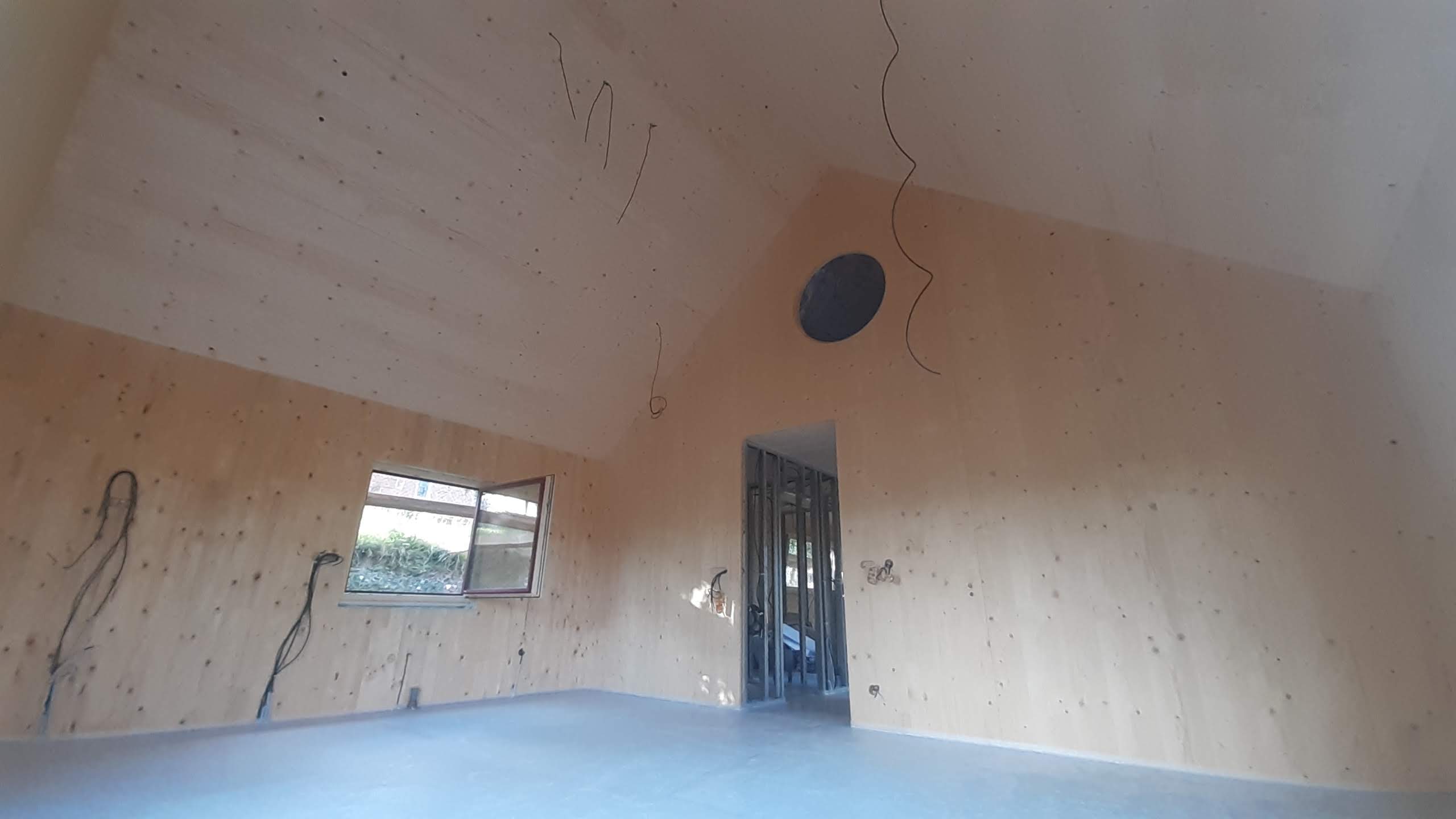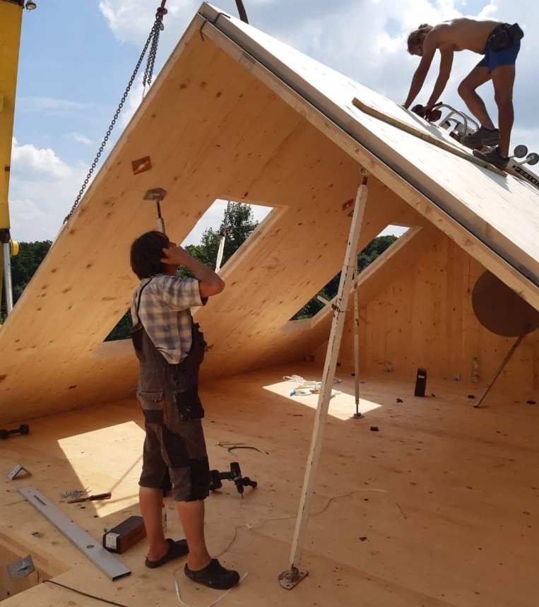V tomto článku si ukážeme další méně obvyklé konstrukční řešení – a sice nadkrokevní izolaci nad nosnou konstrukcí ve spádu tvořenou masivními panely z křížem lepeného dřeva (CLT).
