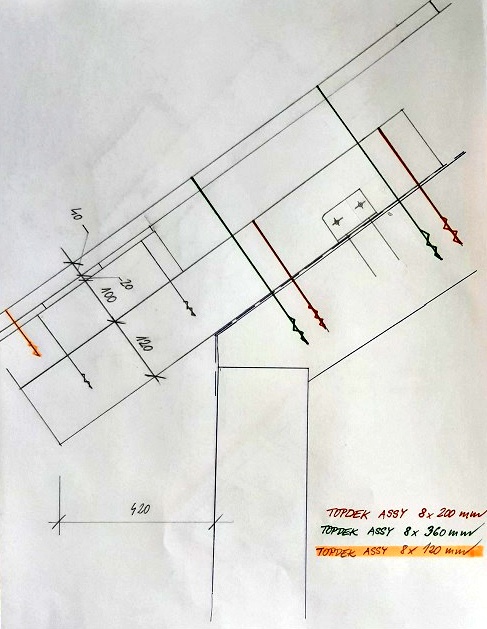 - volnost projektanta i zhotovitele v umístění smykových podpor kotvených úhelníky a navazujících kontralatí kotvených vruty TOPDEK ASSY kdekoli v ploše střechy.