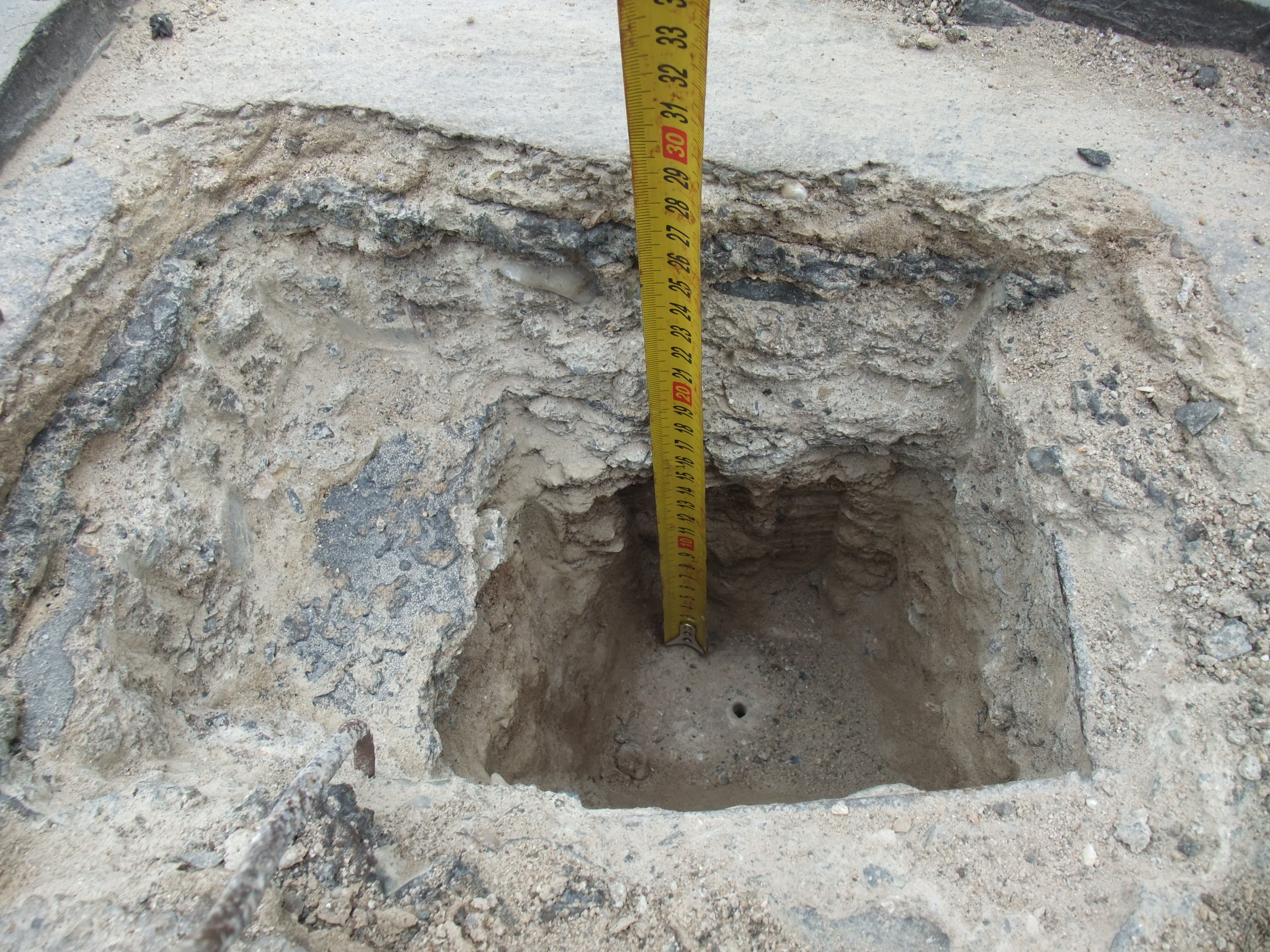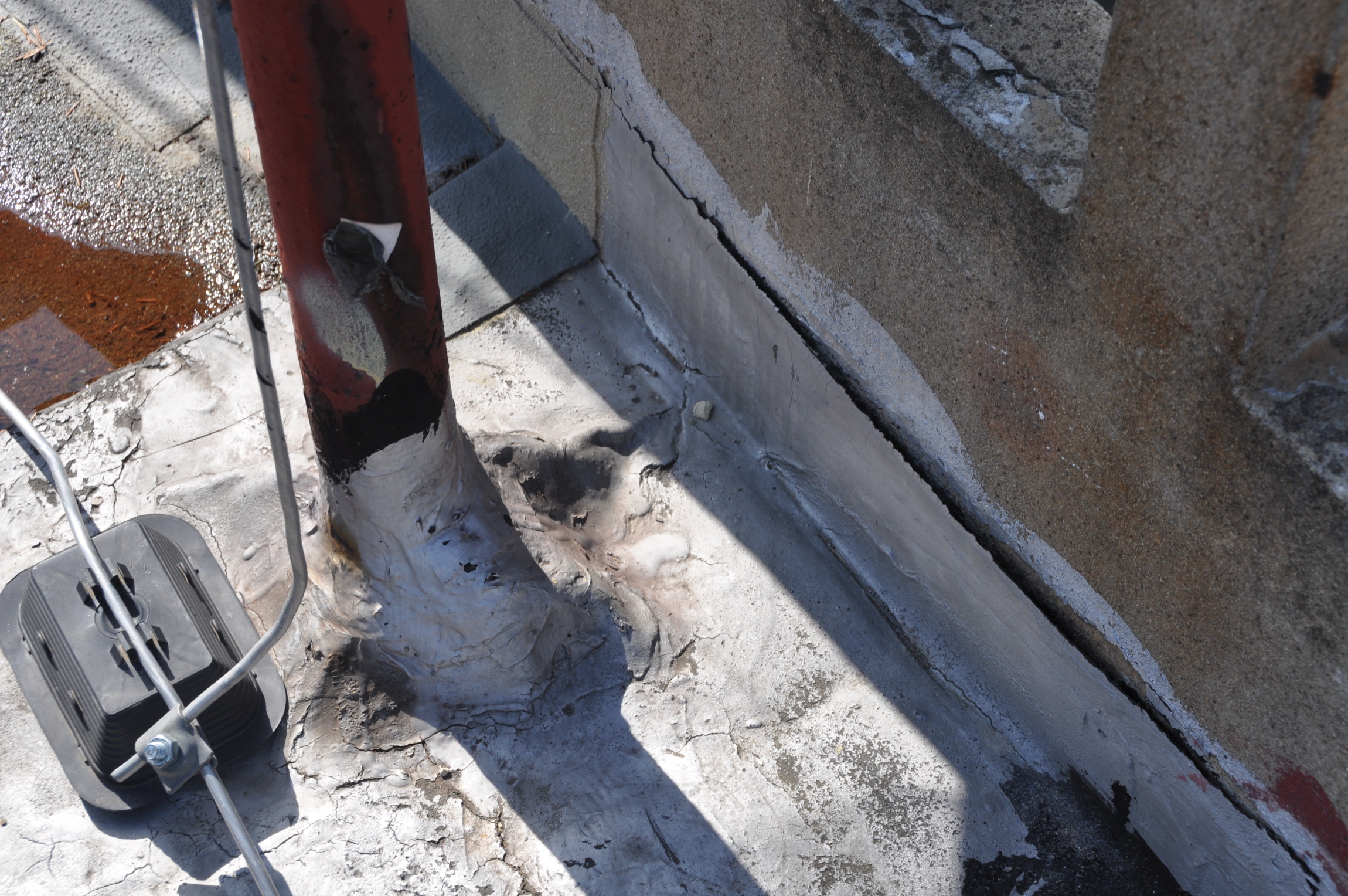 V sondách bylo zjištěno degradované a nesoudržné souvrství asfaltových pásů, mokrý a rozpadlý vyrovnávací beton a trochu překvapivě celkem pevná a soudržná původní asfaltová hydroizolace. Spádová vrstva škvárobetonu byla převážně vlhká, ne však mokrá. Zdrojem zatékání byly především netěsnosti v detailech po obvodu teras (napojení na betonová zábradlí a na stěny vyšších podlaží).