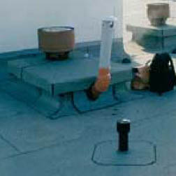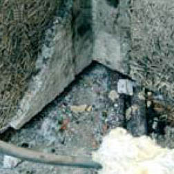 Při bližším prozkoumání šachet byl zjištěn další otvor /obr. 3, 4, 13 a 14/. Jedná se o štěrbinu mezi stropním panelem a spodní částí šachty způsobenou chybějícím podbetonováním. Svou orientací otvory odpovídají termograficky zjištěným průnikům teplého vzduchu z interiéru do střechy.
