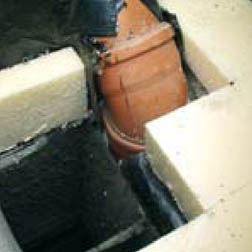Na bytovém domě T06B v Plzni vše nasvědčovalo stejnému problému. Majitel objektu předpokládal, že se jedná o zatékání netěsnou krytinou. Nechal proto provést kompletní rekonstrukci hydroizolace střechy. Zatékání však neustalo. Atelier stavebních izolací, na který se majitel následně obrátil, odhalil vadu tlumicích komor a navrhl standardní způsob odstranění, tzn. oddělení prostoru komory od vzduchové vrstvy /obr. 04/. Ani toto opatření však nevedlo k úplnému odstranění vlhkostních problémů.