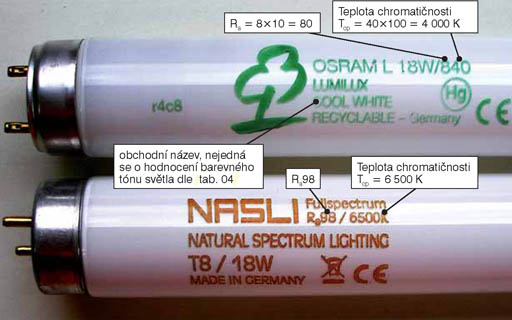 Světelné zdroje s indexem podání barev menším než 80 se nesmějí používat v prostorech s dlouhodobým pobytem osob. Index podání barev bývá uvedený přímo na zdroji (obr. 02) nebo ho musí uvádět výrobce v průvodní dokumentaci. Hodnota se tedy nepočítá, ale slouží projektantovi k návrhu vhodného zdroje dle využití prostoru. Přípustné hodnoty pro jednotlivé prostory jsou uvedeny v ČSN EN 12464-1 a pro příklad v tab. 01.