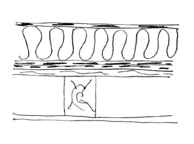 Zjištěná problémová skladba střechy směrem z interiéru (Obr. 2 - 4):
