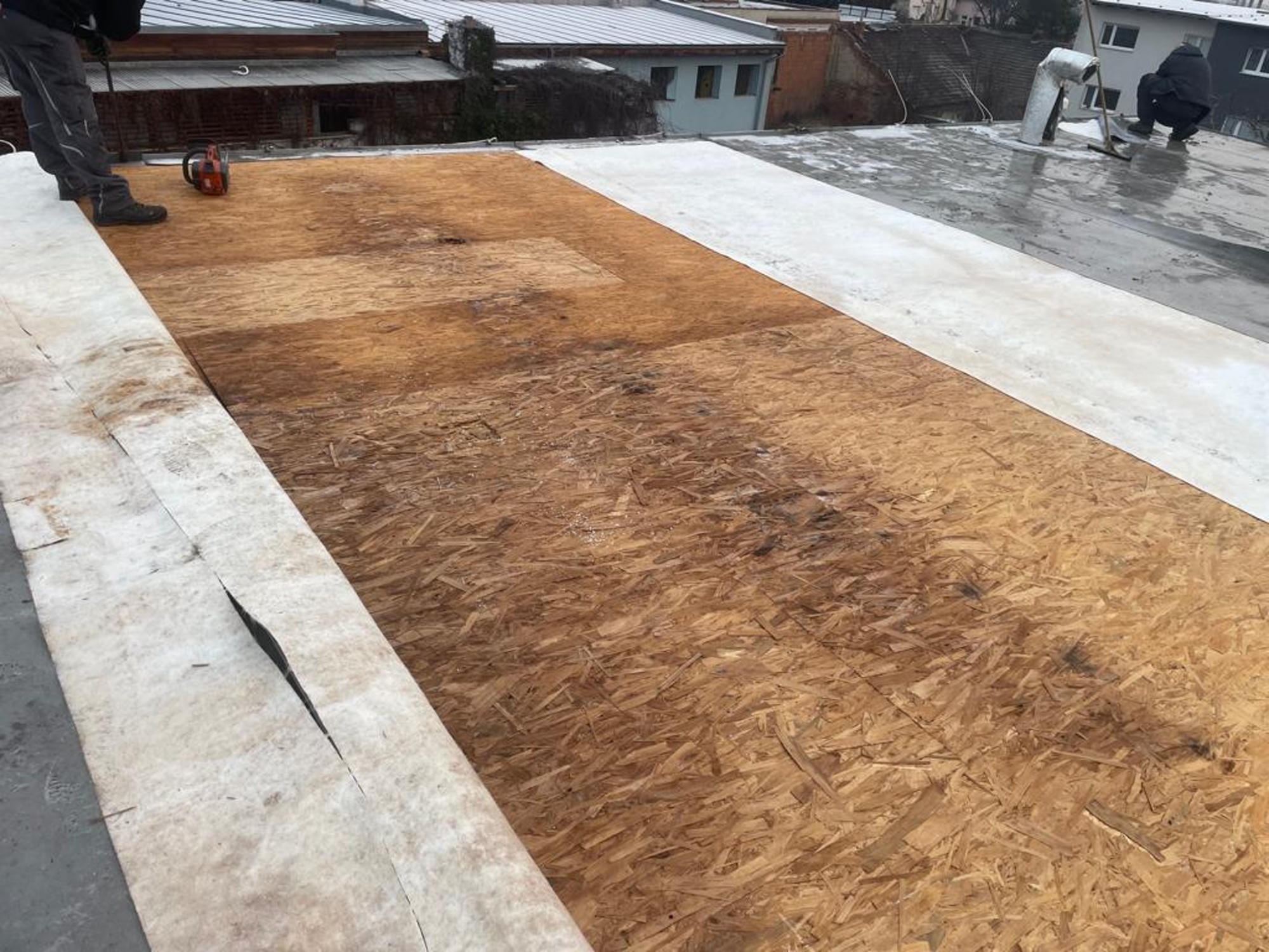 Parozábranu lehkého typu nahradí parozábrana z asfaltového pásu. Na OSB deskách se jedná o samolepicí asfaltový pás. Tepelnou izolaci doporučujeme s minimální pevností v tlaku 100 kPa. Stabilizace nové povlakové hydroizolační vrstvy se může provést všemi způsoby, záleží na únosnosti nosných prvků.