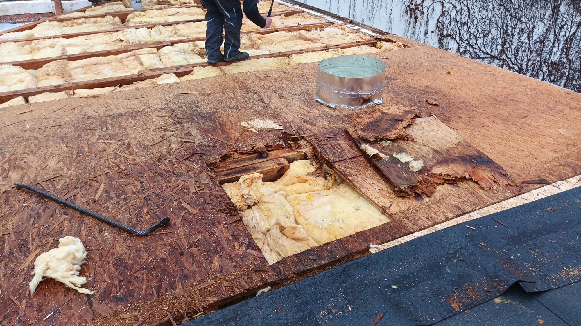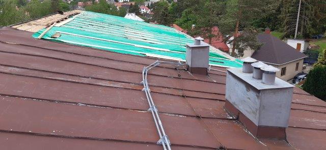 V podstřešních pokojích nebyly pozorovány žádné poruchy, dokud střecha neulétla. K odtržení plechové krytiny došlo, protože podkladní bednění, do kterého byla krytina připevněná, bylo shnilé.