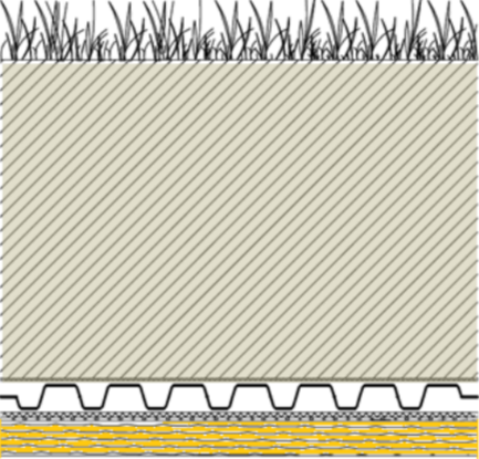 Dále lze jednoznačně konstatovat, že rostoucí tloušťka substrátu má pozitivní vliv na retenční vlastnosti střechy, jak je vidět na Obr. 17. Větších tlouštěk substrátu se používá především při požadavku na intenzivní střechy. Při použití travní vegetace je ale nutné počítat s velmi intenzivní údržbou. Bez pravidelné zálivky nejsou schopny správně fungovat (více o požadované údržbě bude v dílu Údržba vegetačních střech). Z dnešního pohledu, kdy je maximální snaha vodou šetřit, je použití travních systémů v našich klimatických podmínkách diskutabilní a ekologicky smysluplné pouze v případě, kdy se na zalévání využívá šedé nebo zachycené vody. Využívání pitné vody z vodovodního řadu nebo čerpané spodní vody je v rozporu s globální snahou o snížení sucha krajiny.