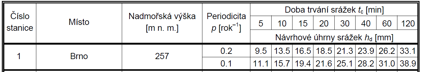 ] návrhový úhrn srážek hd [mm] pro různé doby trvání. Příklad pro Brno je uveden na Obr. 2.