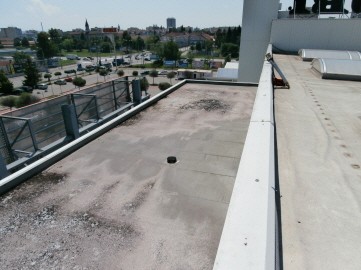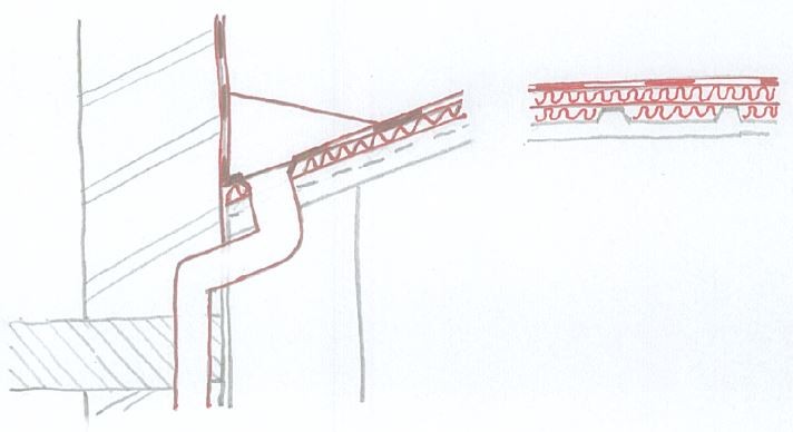 V níže popsaném případě se jednalo o původní střechu s krytinou ze sendvičových panelů na povrchu opatřených profilovaným plechem. Střecha byla původně odvodněna do podokapního žlabu.