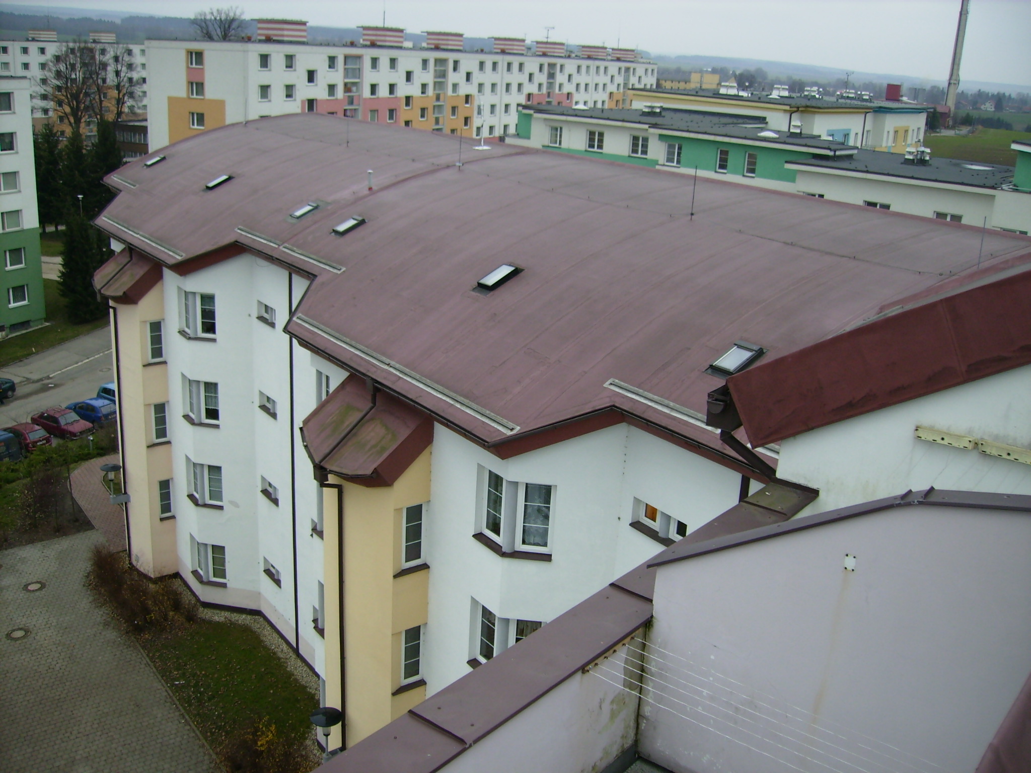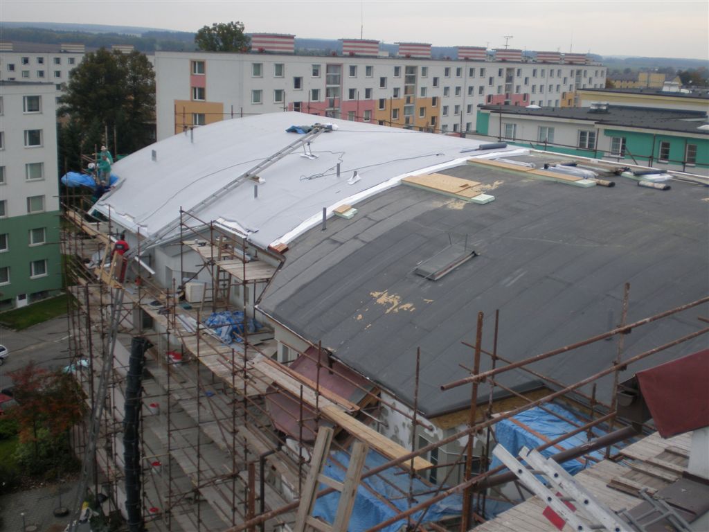 Nová skladba střechy při rekonstrukci v roce 2007 byla řešena jako jednoplášťová s povlakem pokládaným na tepelněizolační vrstvu: