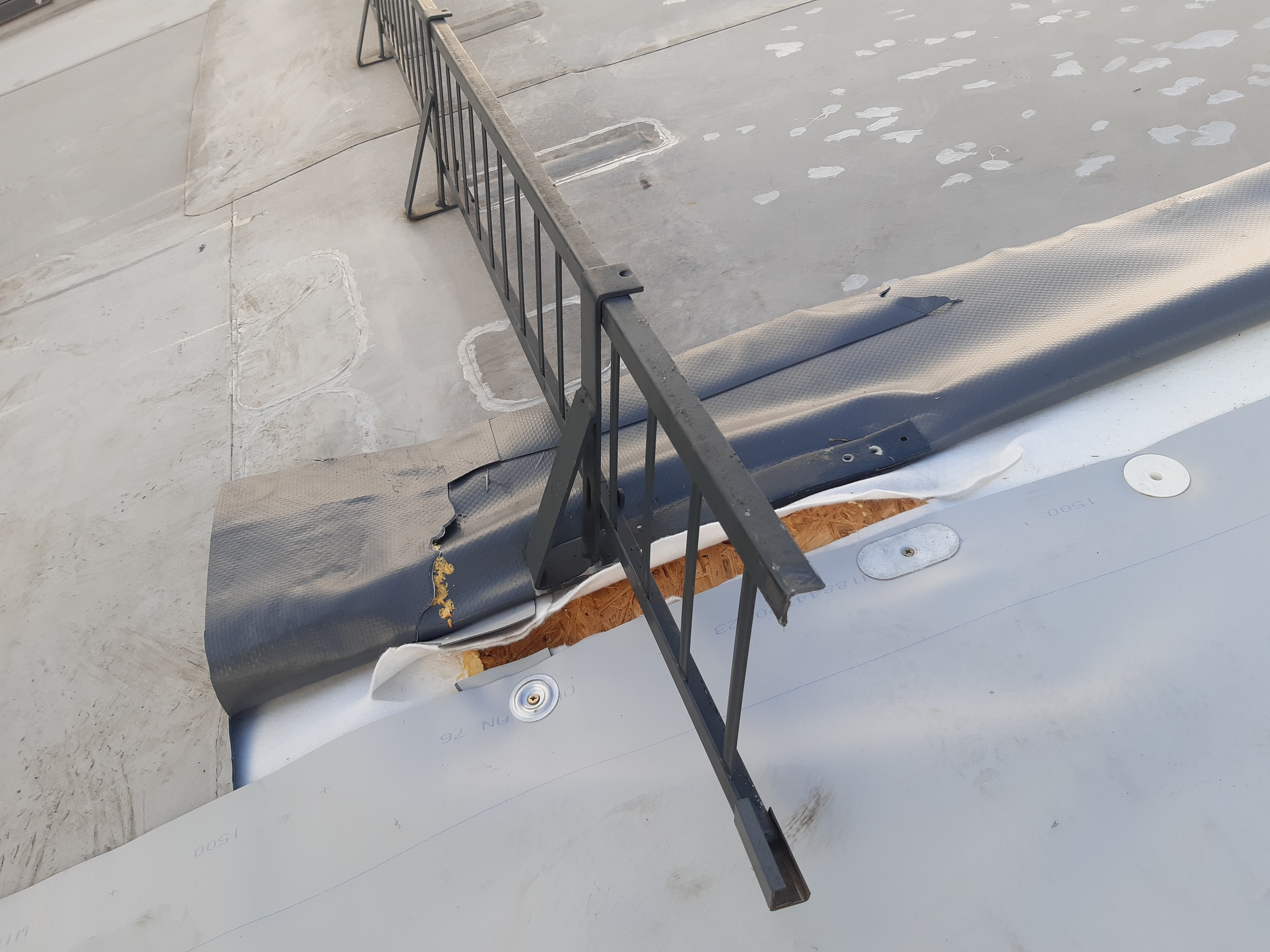Po 15 letech provozu byla část střechy poškozena masivním krupobitím. Rozsah poškození neumožňoval provést lokální opravy a tak byla nutná kompletní výměna povlakové hydroizolace z PVC-P fólie za novou. To nám umožnilo provést kontrolu a ověření funkčnosti řešení navrženého a zrealizovaného v roce 2007. Naše pozornost byla směřována převážně na zmíněné řešení ukotvení sněhových zachytávačů včetně kritického prostupu sněhového zachytávače skrz PVC-P fólii a na stav OSB desek zabudovaných do jednoplášťové střechy.