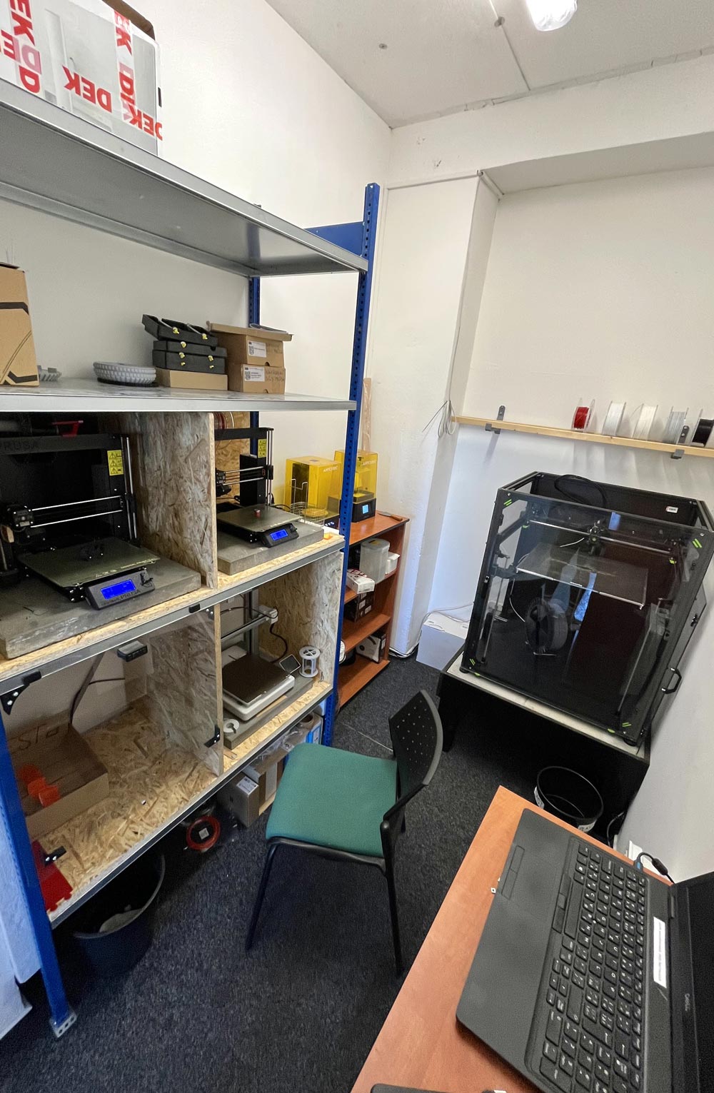 Součástí našeho technického zázemí jsou také moderní 3D tiskárny Průša a RatRig, které využíváme pro rychlou a přesnou výrobu prototypů, modelů a dílů potřebných pro vývoj a testování. Díky 3D tisku můžeme ověřovat konstrukční řešení, upravovat návrhy a urychlit celý proces výzkumu a vývoje.