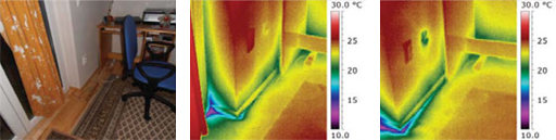 Typickou významnou netěsností jsou u tohoto typu zdiva rozvody elektroinstalací (obr. 11). Výrobci keramických dutinových bloků si tuto nevýhodu uvědomují a někteří postupně technologie upravují tak, aby bylo možné vystavět vyhovující objekt. Důležité je dodržet technologickou kázeň. Nejnižší změřená hodnota u objektu s dutinovými keramickými bloky je n50 = 0,20 [h-1].