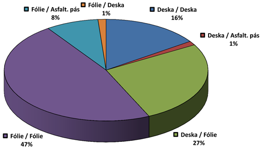 Posledním rozborem je rozdělení výsledků měření celkové průvzdušnosti obálky budov podle typu vzduchotěsnicí vrstvy obvodových stěn a střech (stropů) u dřevostaveb. Vzduchotěsnicí vrstvy jsou tvořeny: